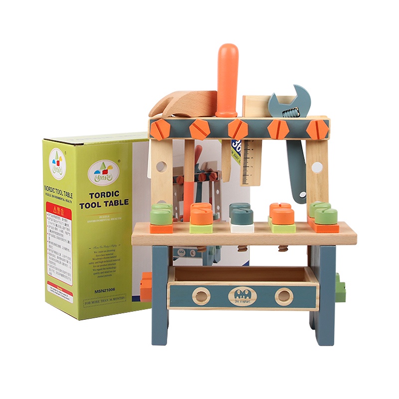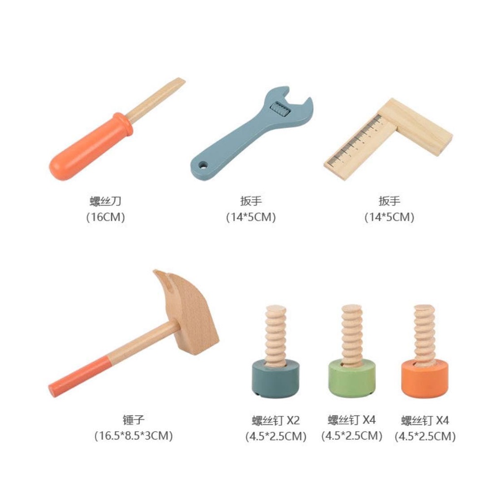 BYJ Wooden Tordic Tool Table Wooden Mini Tool Bench for Kids Pretend Play Set Screw Construction Toy