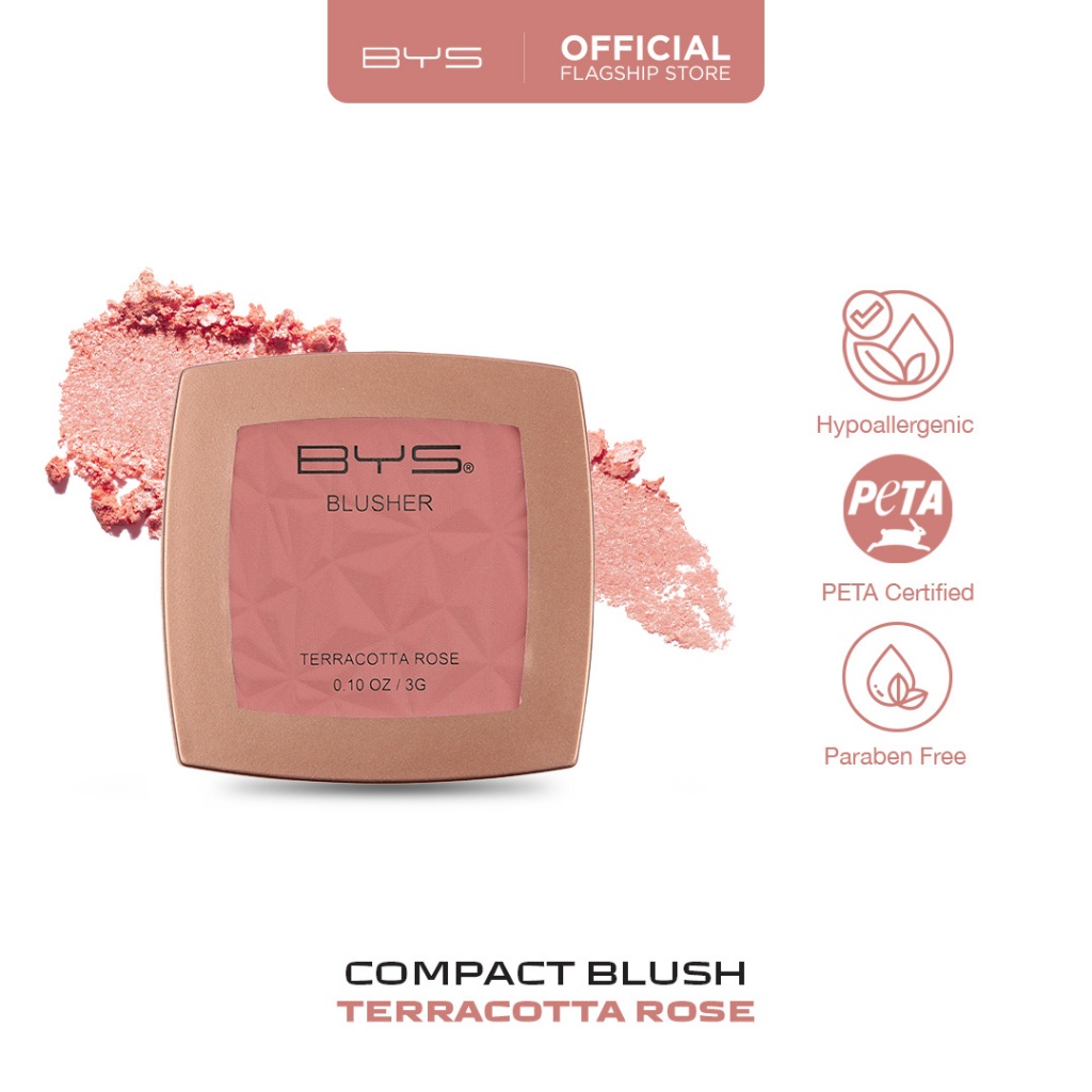 BYS Compact Blush Make Up Cosmetic - High Performance Smooth Silky Formula with Mica for Soft Sheer