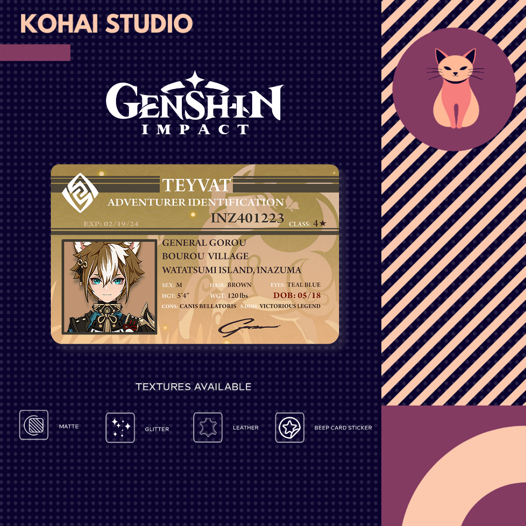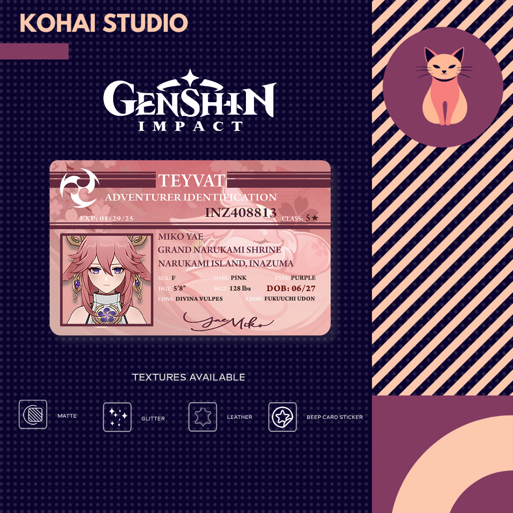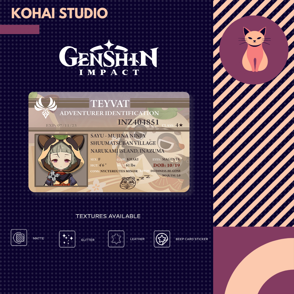 Genshin Impact ID Card Inazuma Characters Part 1 Anime Manga Cosplay BEEP Sticker