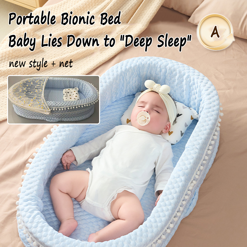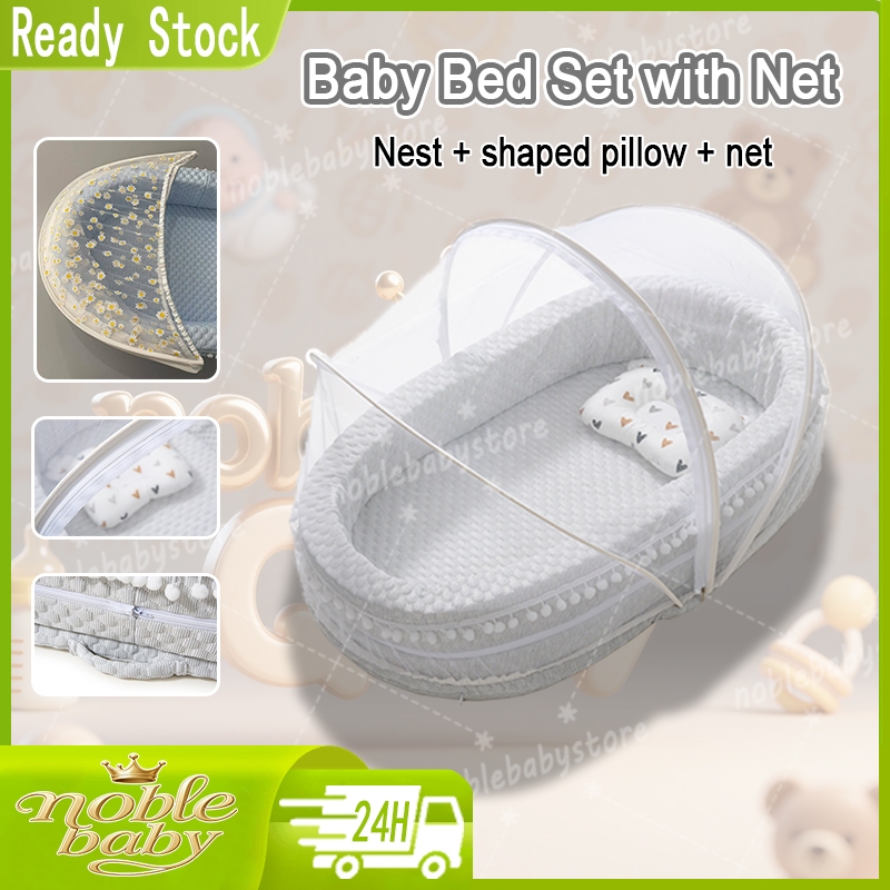 Baby Bed Set for Newborn Cotton Portable Baby Nest Complete Set Bed Bedding Detachable Net 0-18M