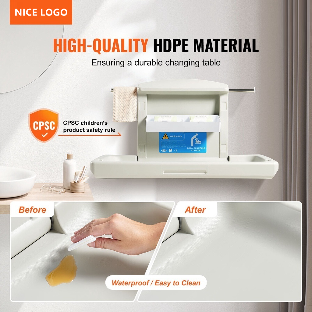 Baby Changing Station Commercial Wall Mounted Baby Diaper Changing Table Fold Down Vertical