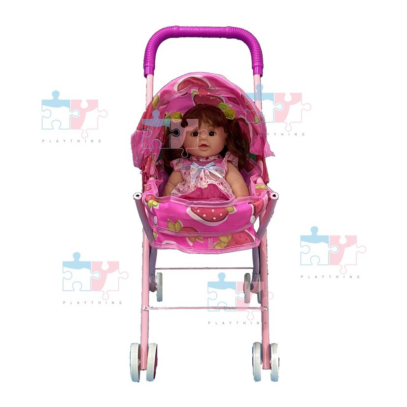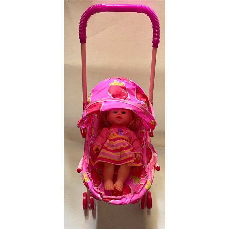 Baby Doll with Metal Stroller Cute Rubber Dolls Manika Toy Toys