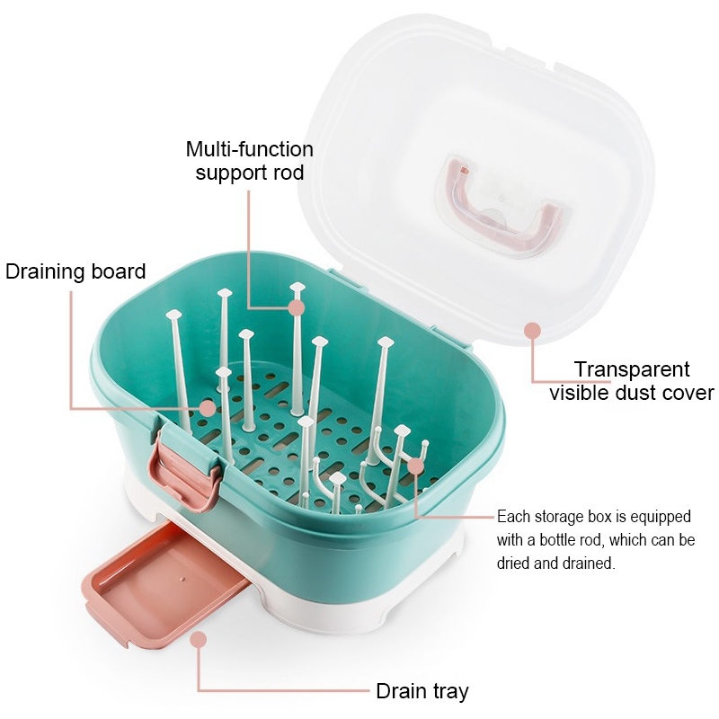 Baby Feeding Bottle Storage Box Large Baby Cutlery Organizer Nursing Bottle Drying Rack Box