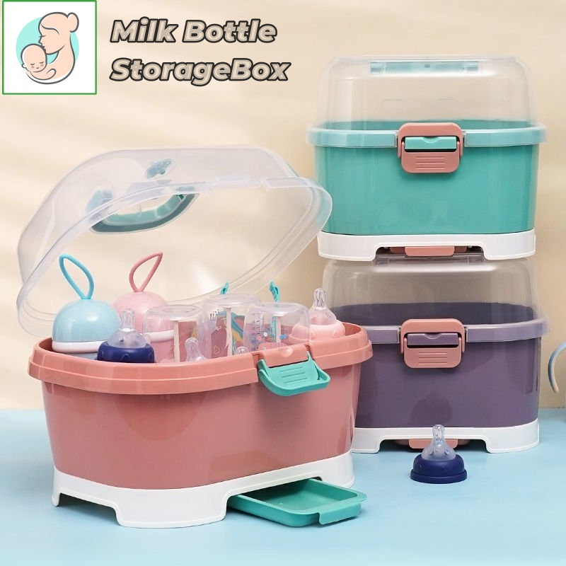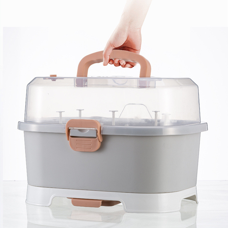 Baby Feeding Bottle Storage Box with Cover Nursing Bottle Drying Box with Bottle Holder and Pacifier Holder