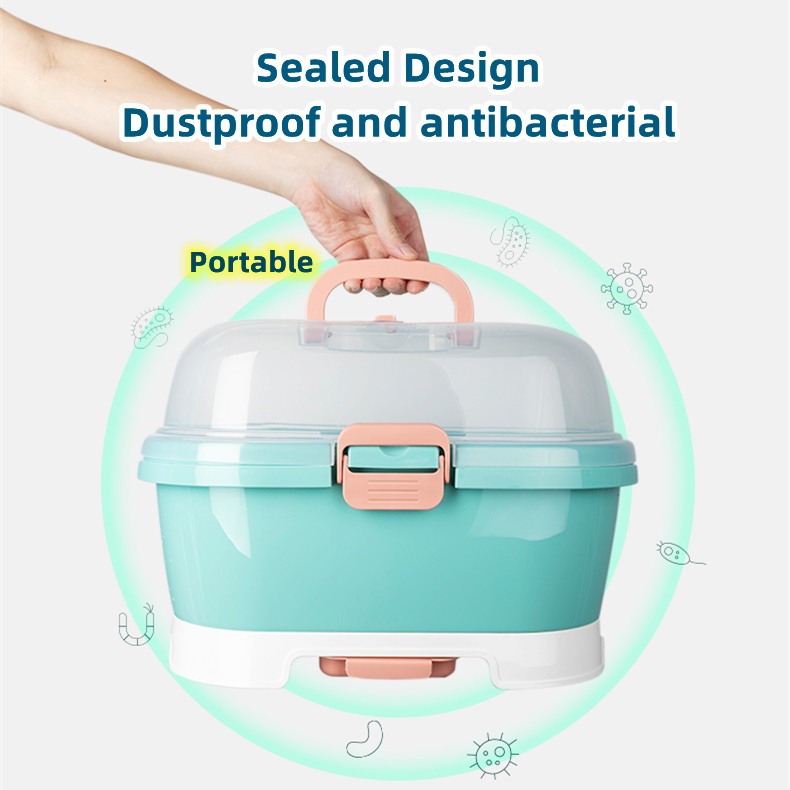 Baby Feeding Bottle Storage Box with Cover Nursing Bottle Drying Rack Baby Dinnerware Organizer