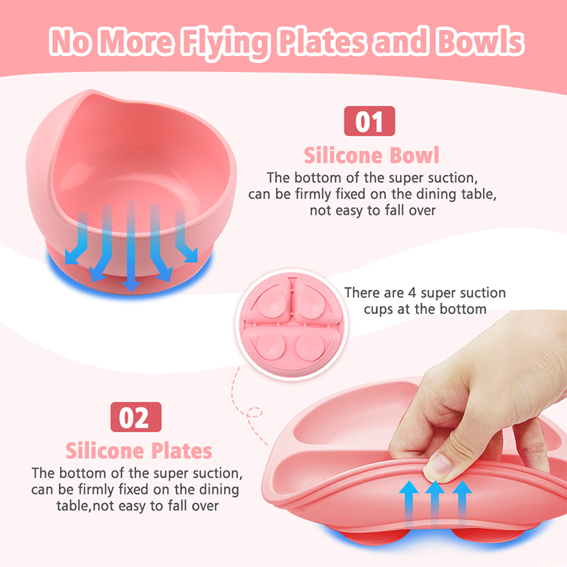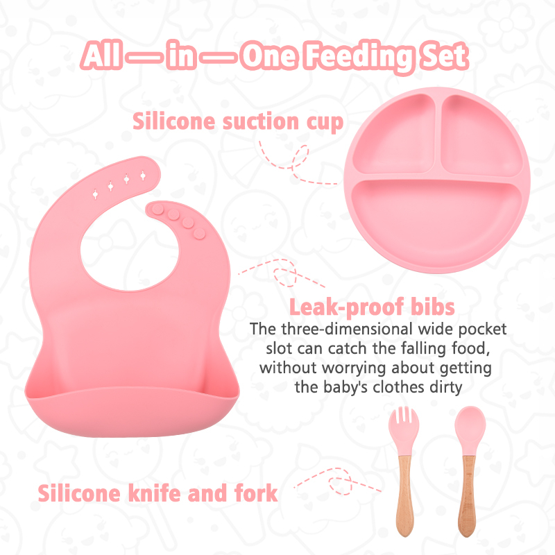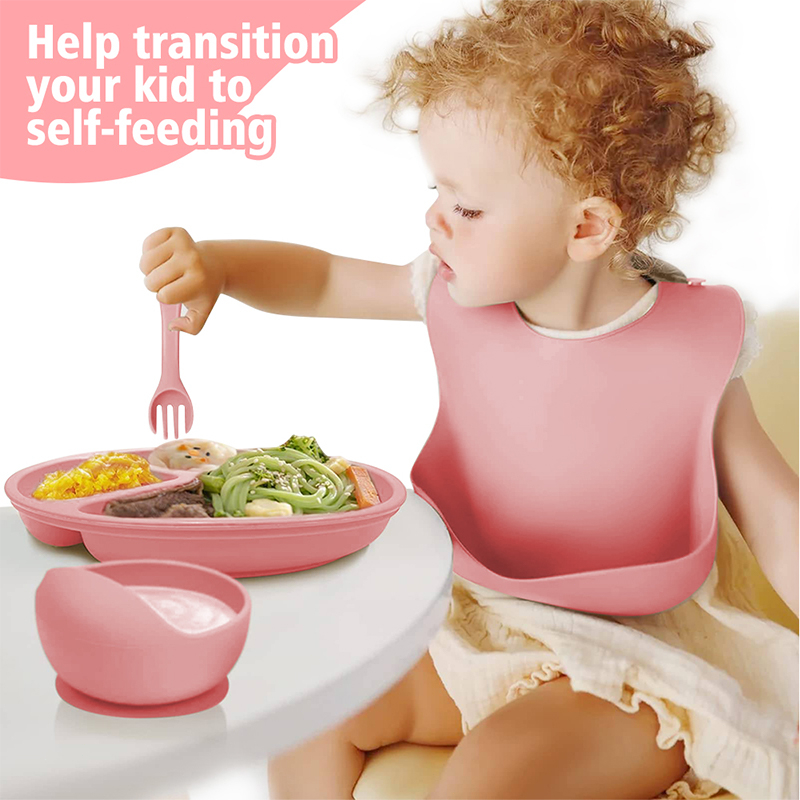 Baby Feeding Set 6pcs Silicone Baby Plate Set Infant Silicon Bib Suction Bowl Cup Spoon Forks feeding Set For Baby