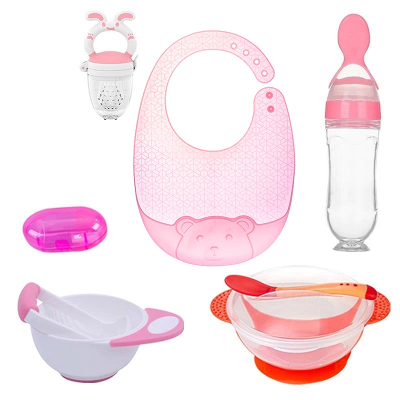 Baby Feeding Set Combo Set Bowl Spoon Feeder pacifier Silicone bib Toothbrush Feeding Essential