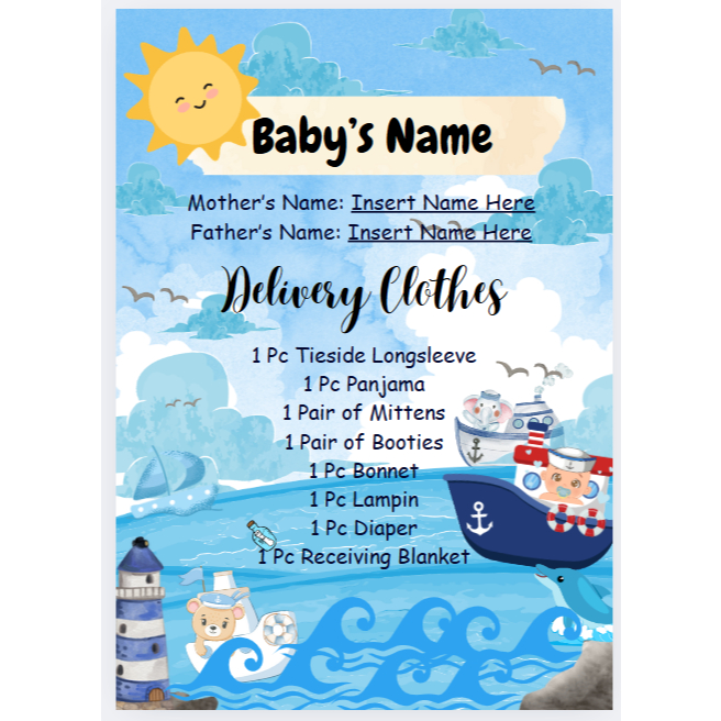 Hospital Essentials Sticker Label 8 Pages PLUS 8 pcs of Baby Name Sticker for nesting mommies