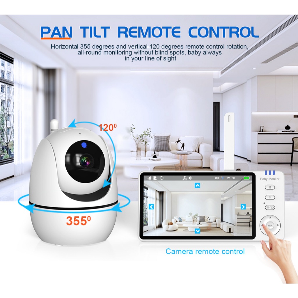 Baby Monitor No WiFi - 1080P HD 5" Video Monitors with Camera and Audio, IPS Screen 4X Zoom, 32-Hour Battery, Night Vision, VOX, 2-Way Talk, 2-Way Rotating, 1200ft Range