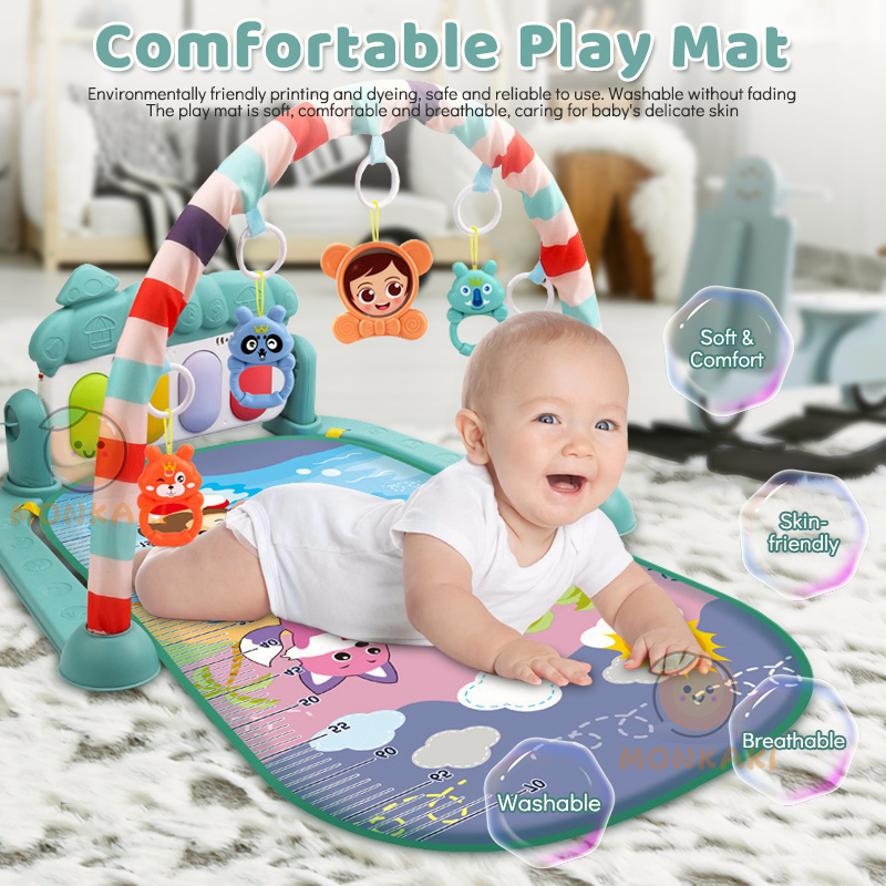 Baby Play Mat (With Lights Music Piano Keyboard & Hanging Toy) Gym Crawling Game Pad Baby Toys