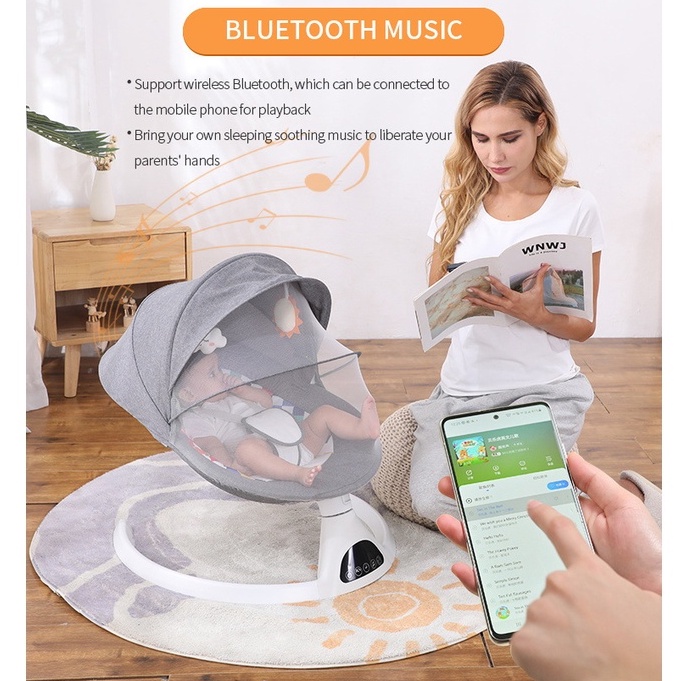 Baby Rocker Swing Chair Electric Rocking Chair For NewBorn Baby With LED Bluetooth Net Music