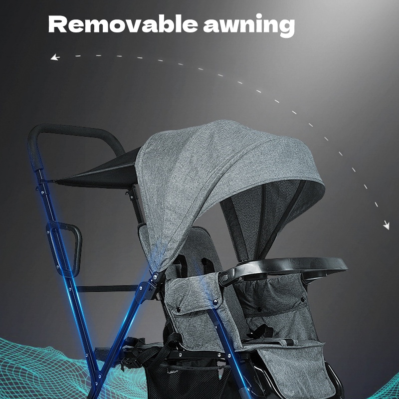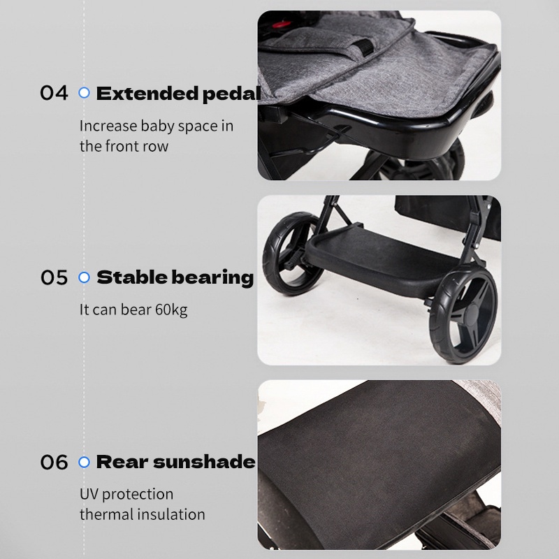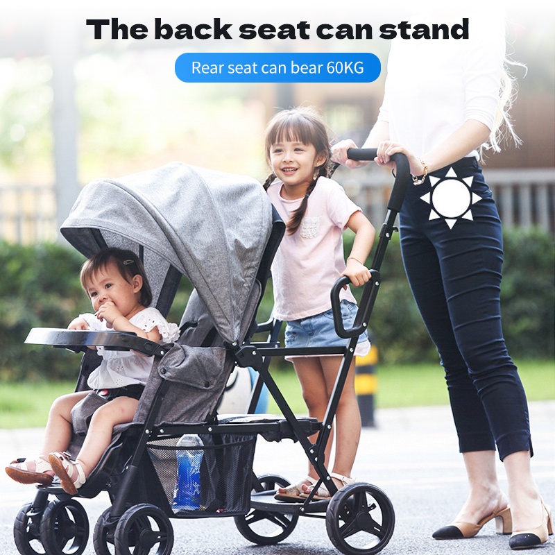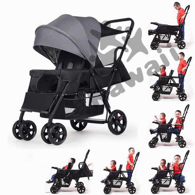 Baby Stroller Twin Stroller Comfortable Seating Foldable Two-ways 0-7 Year Travel Stroller For Baby