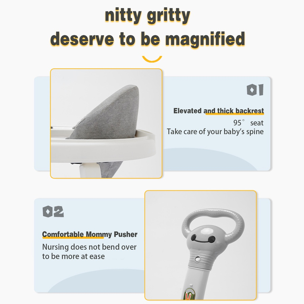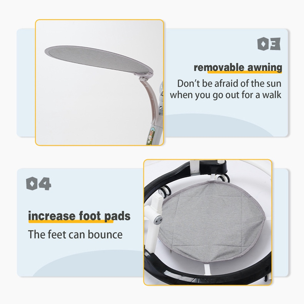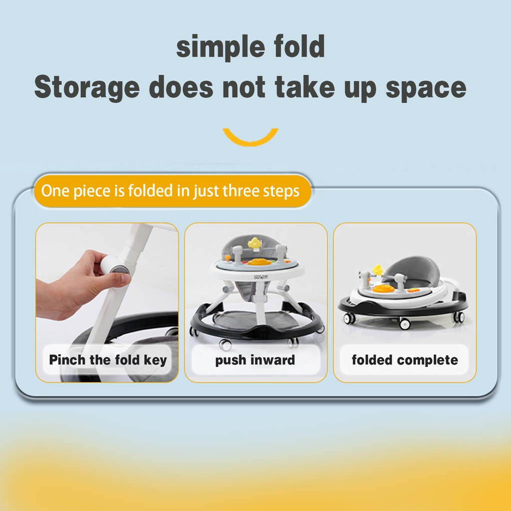Baby Walker Suitable For 6-24 Months Infant multi-functional Adjustable Foldable with music & lights