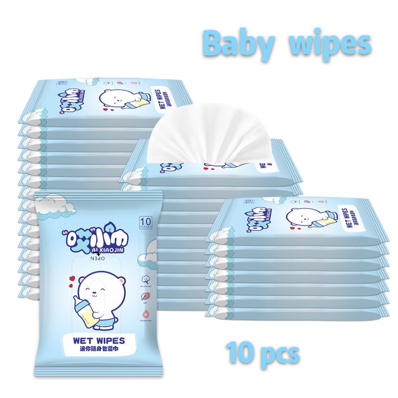 Baby Wipes 10 pulls per pack Mini wipes Easy to carry Baby available Disinfection wipes