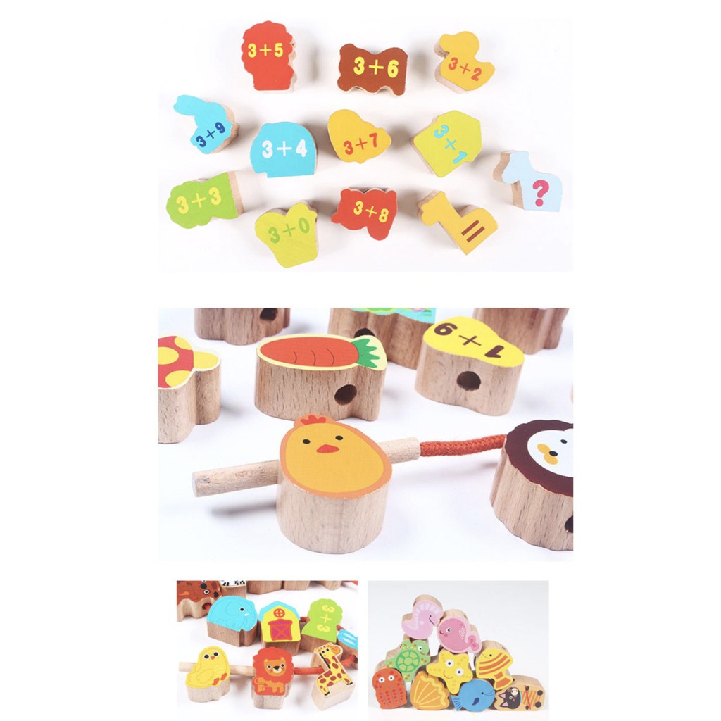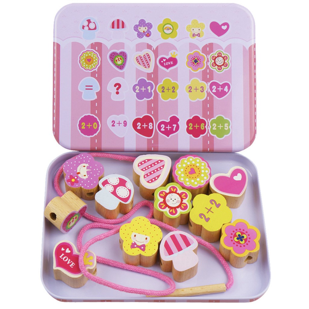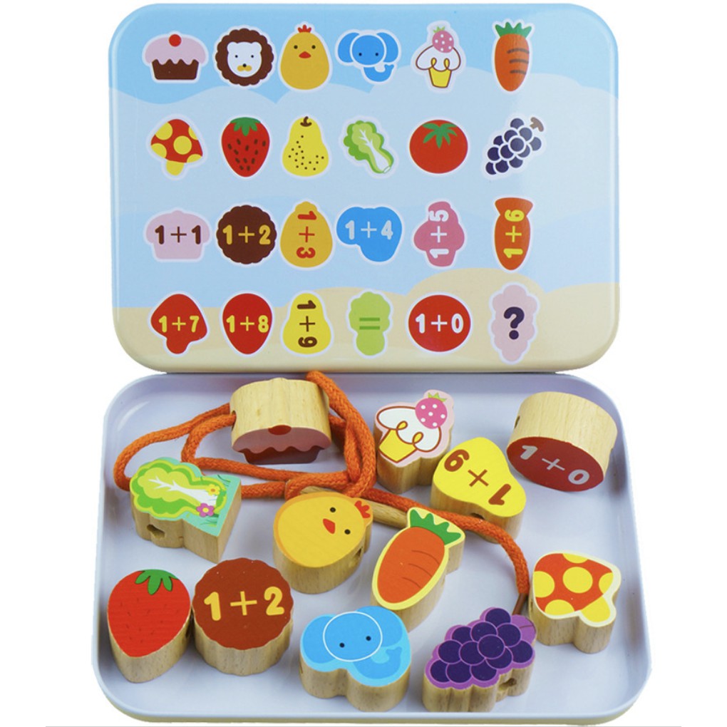 Baby Wooden Beads String with Metal Box Threading Toy Lacing Beads String Beads Toy Early Learning Montessori Toy
