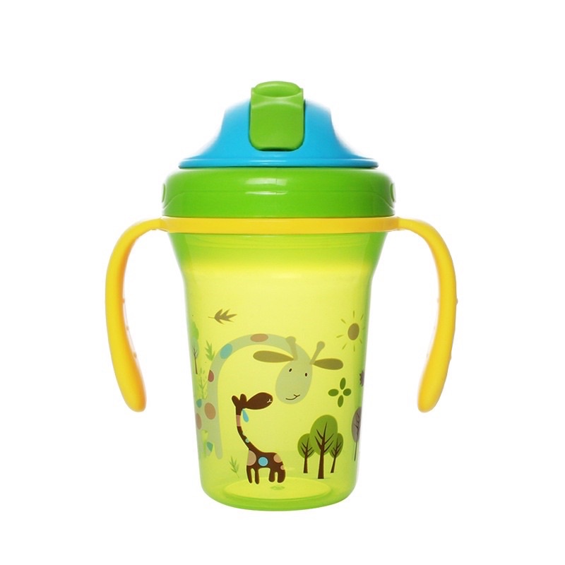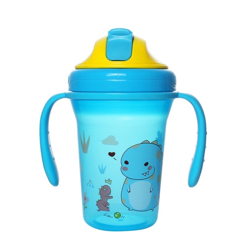 Baby cups Cute Water Bottle Solid Feeding Kid Cartoon Portable Handle Plastic Cup with
