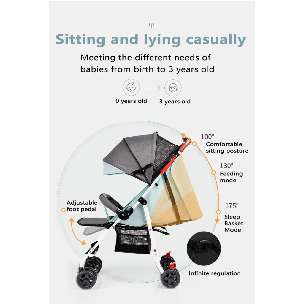 Babystrollerreclining or sitting one-touch retractable foldable portable four-wheeled pram0-36months