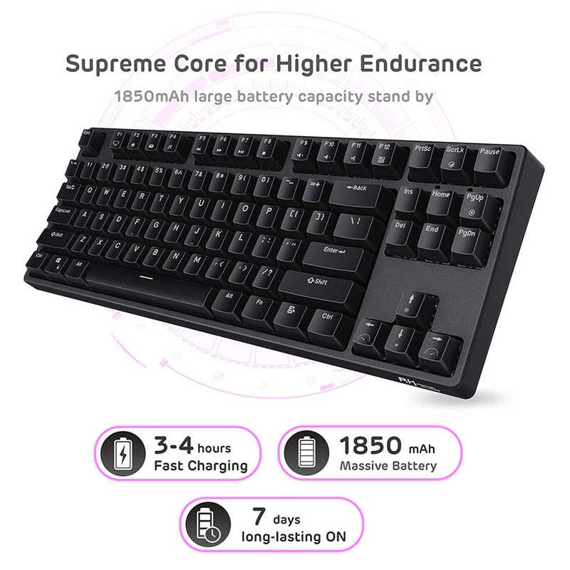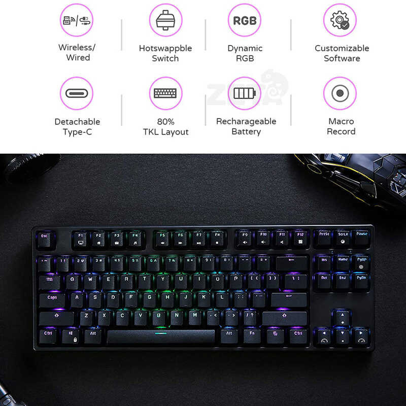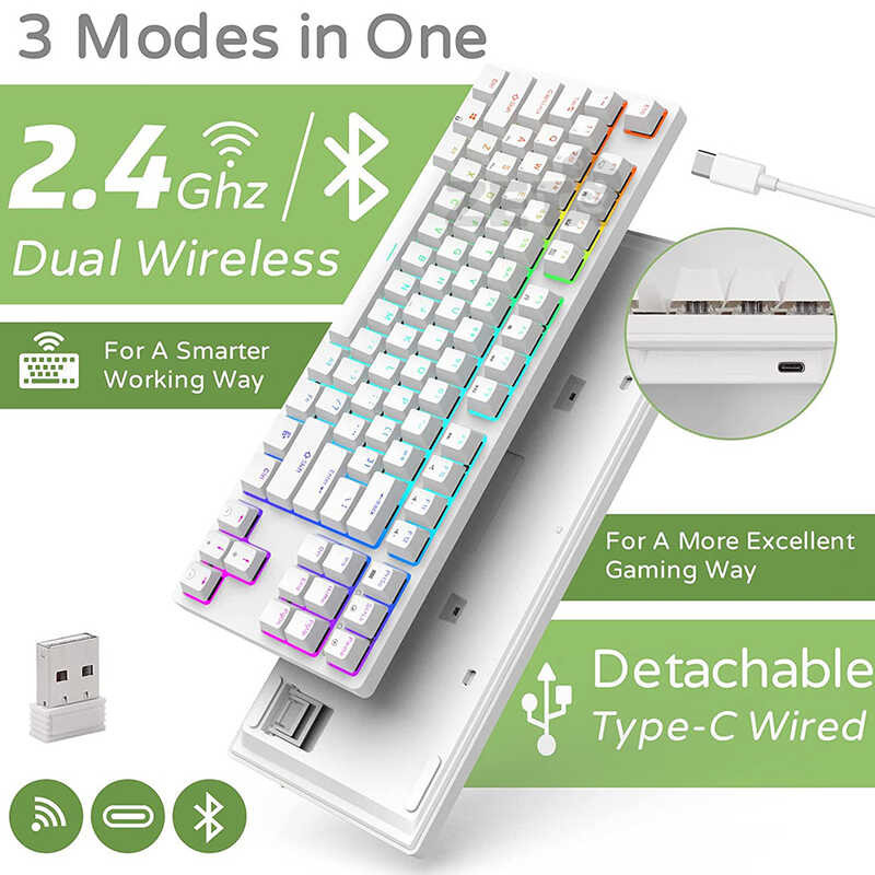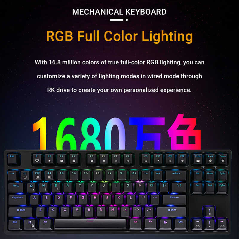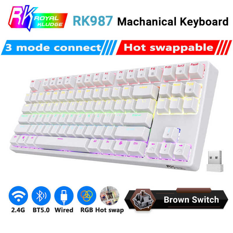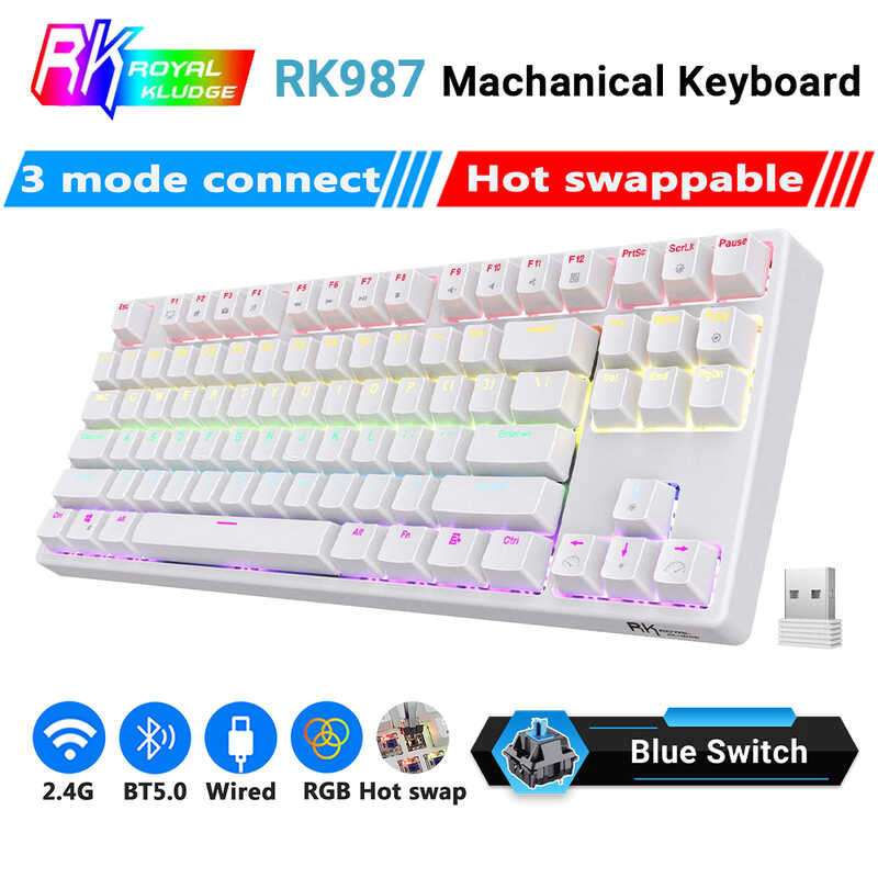 Backlit Rk987 RGB 80% Wireless Mechanical 87 Keys Hotswappable Gaming Keyboard With Software