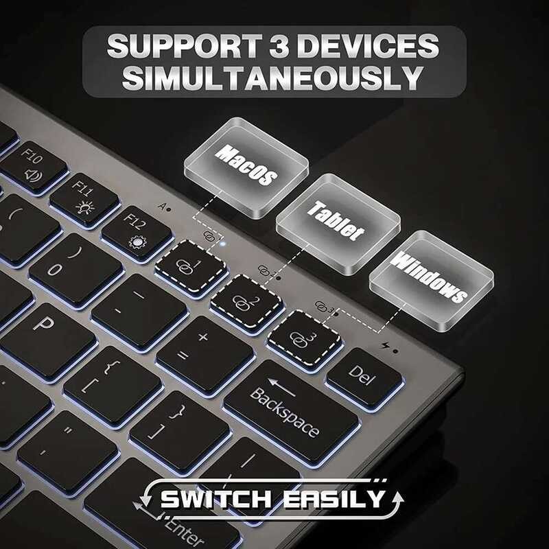 Backlit Wireless Keyboard And E Combo Bluetooth 2.4G USB Rechargeable Multi-Device Keyboard Set