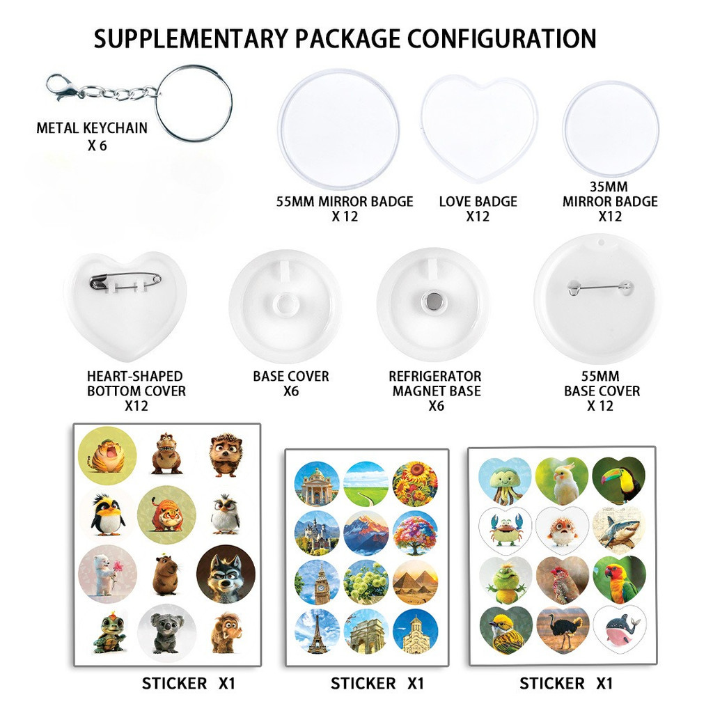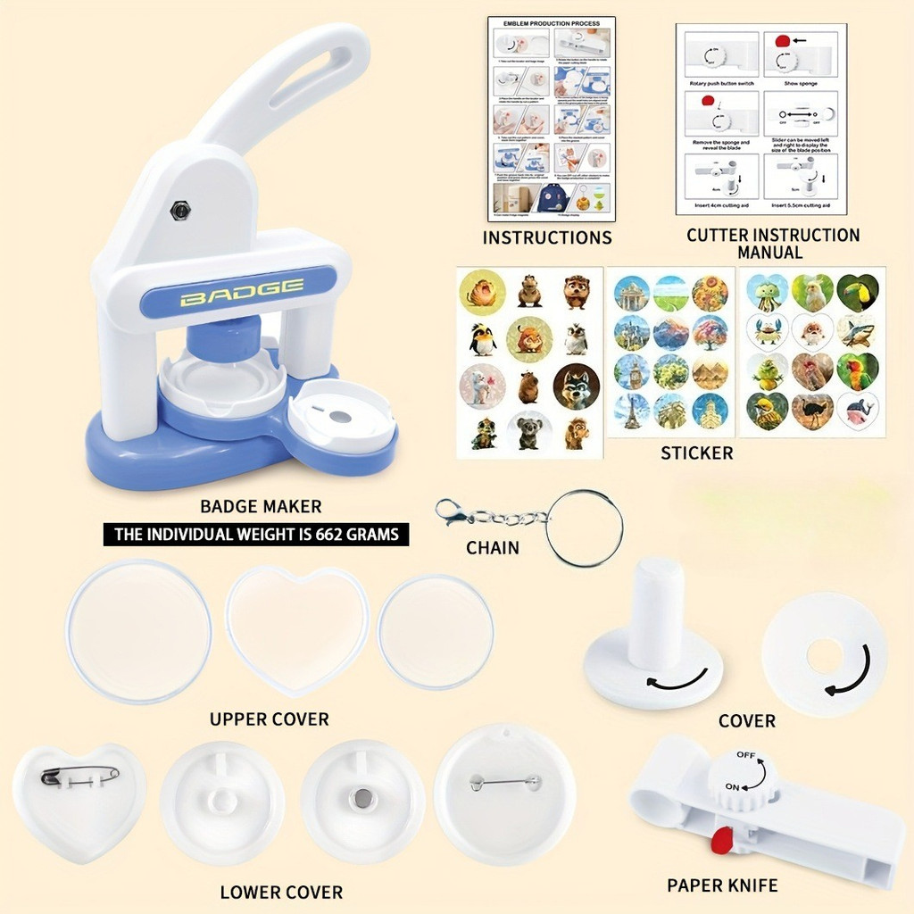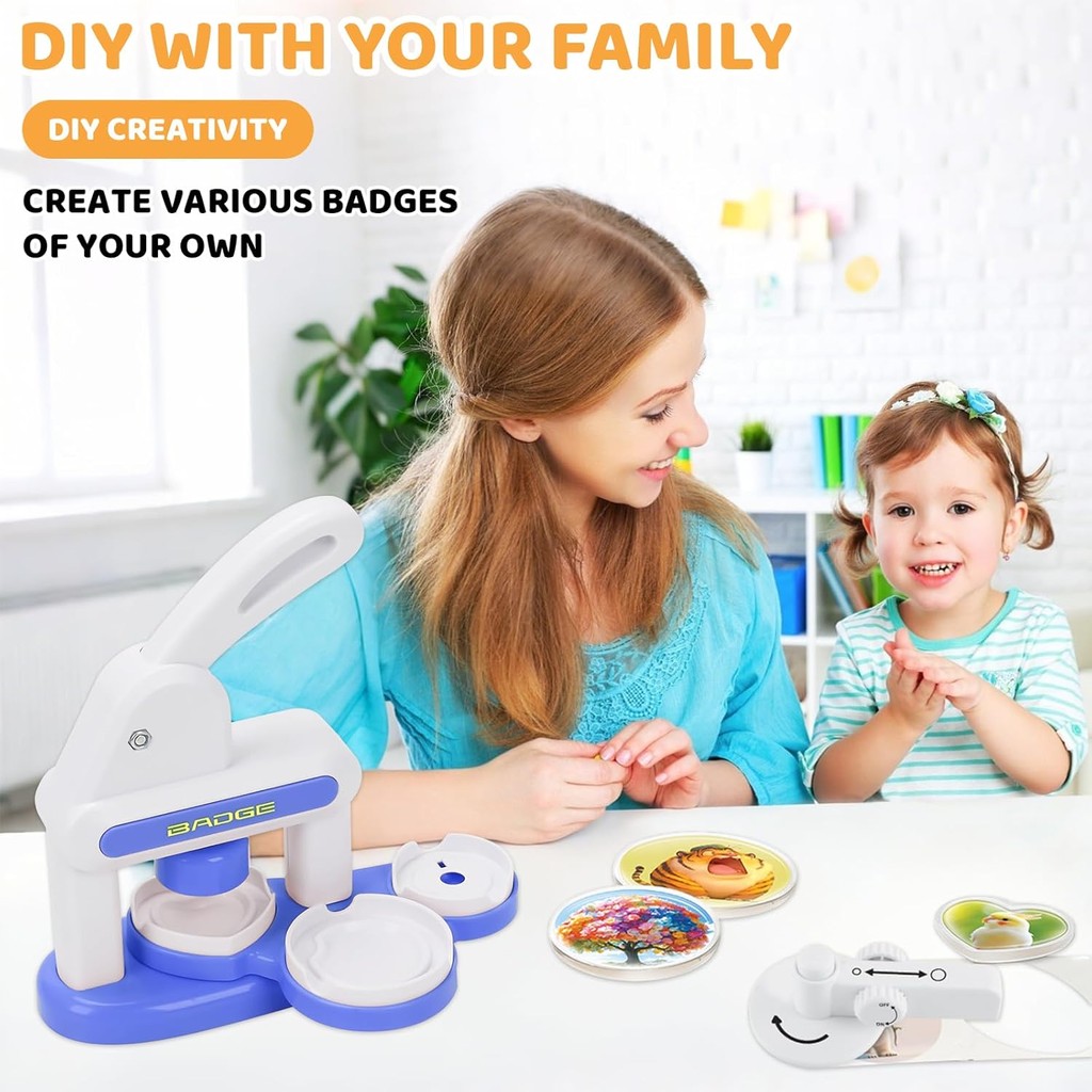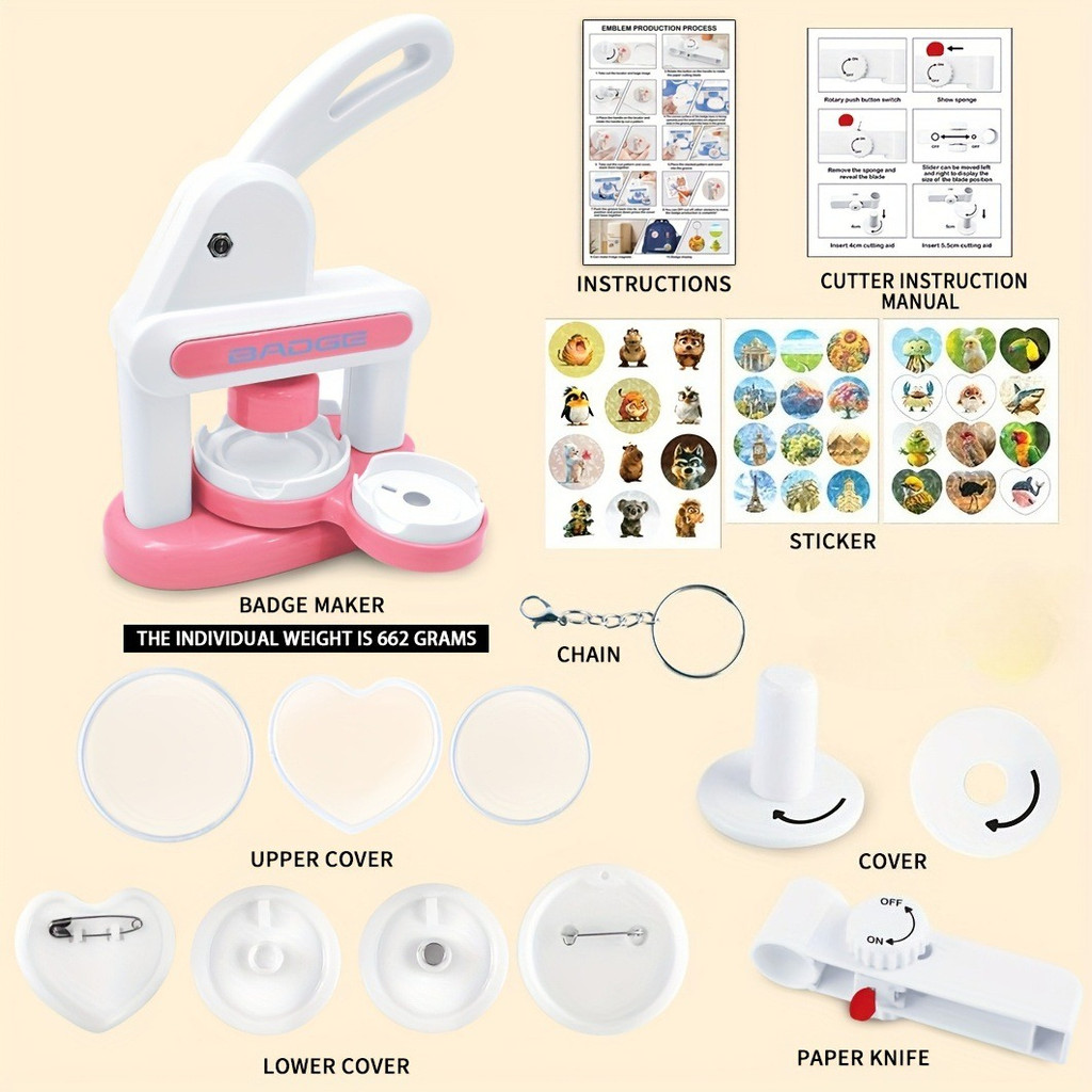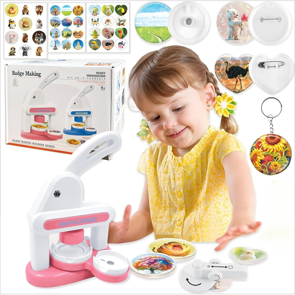 Badge Maker 3 in 1 Badge Making Kit for Kids 35-55mm DIY Round/Heart Pin Badge Machine Set 86Pcs Badge Punch Kit Arts & Crafts Gifts for Birthday Party