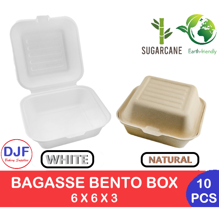 Bagasse Bento Box Hamburger Burger box Sugarcane Cake Box 6x6x3 inches EcoFriendly 10-50PCS
