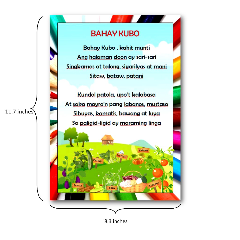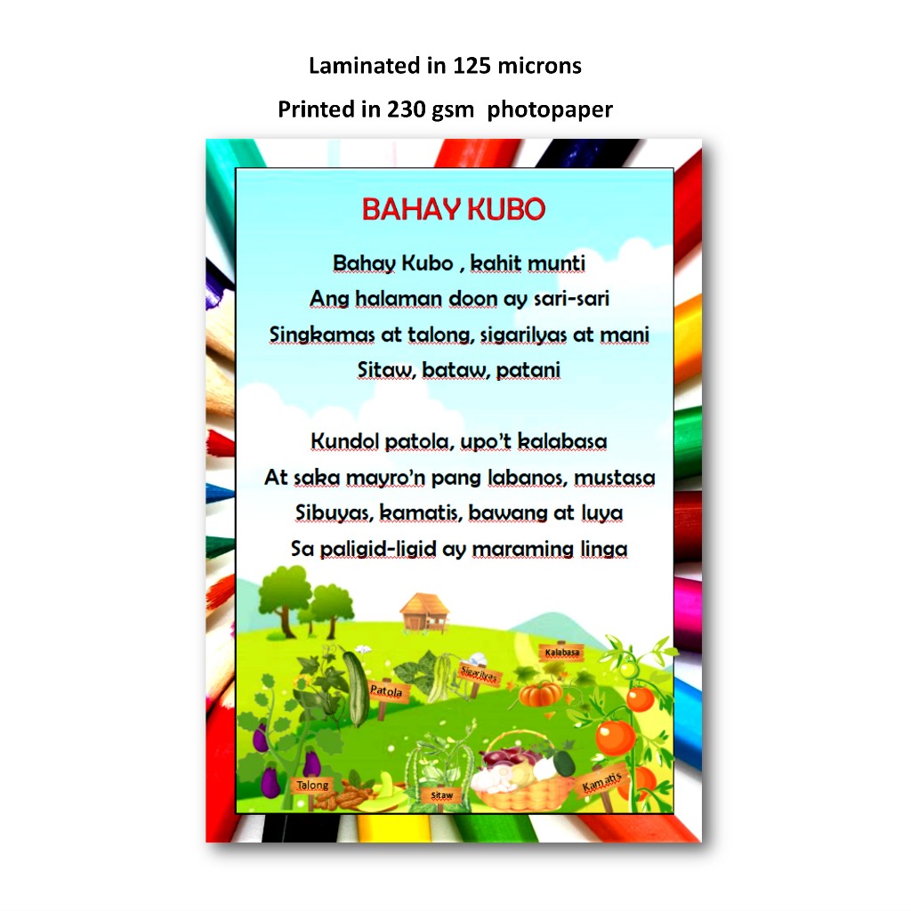 Bahay Kubo educational chart for kids laminated