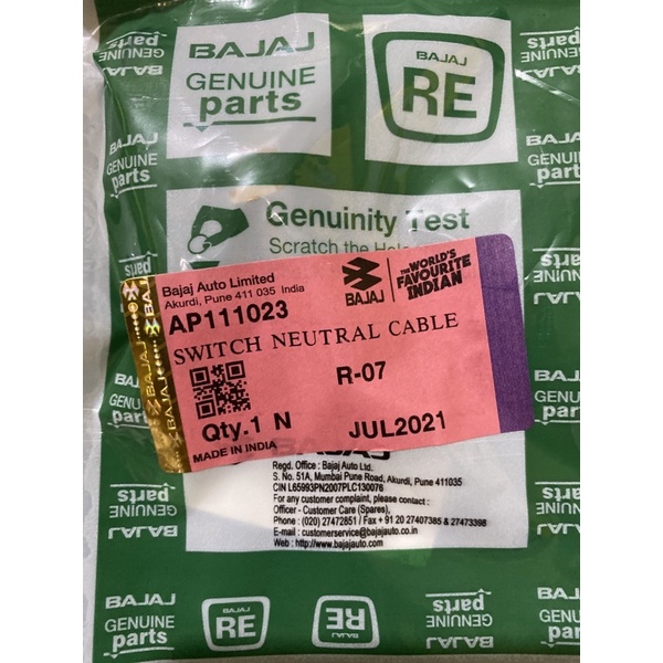 Bajaj RE Genuine Switch Neutral Cable