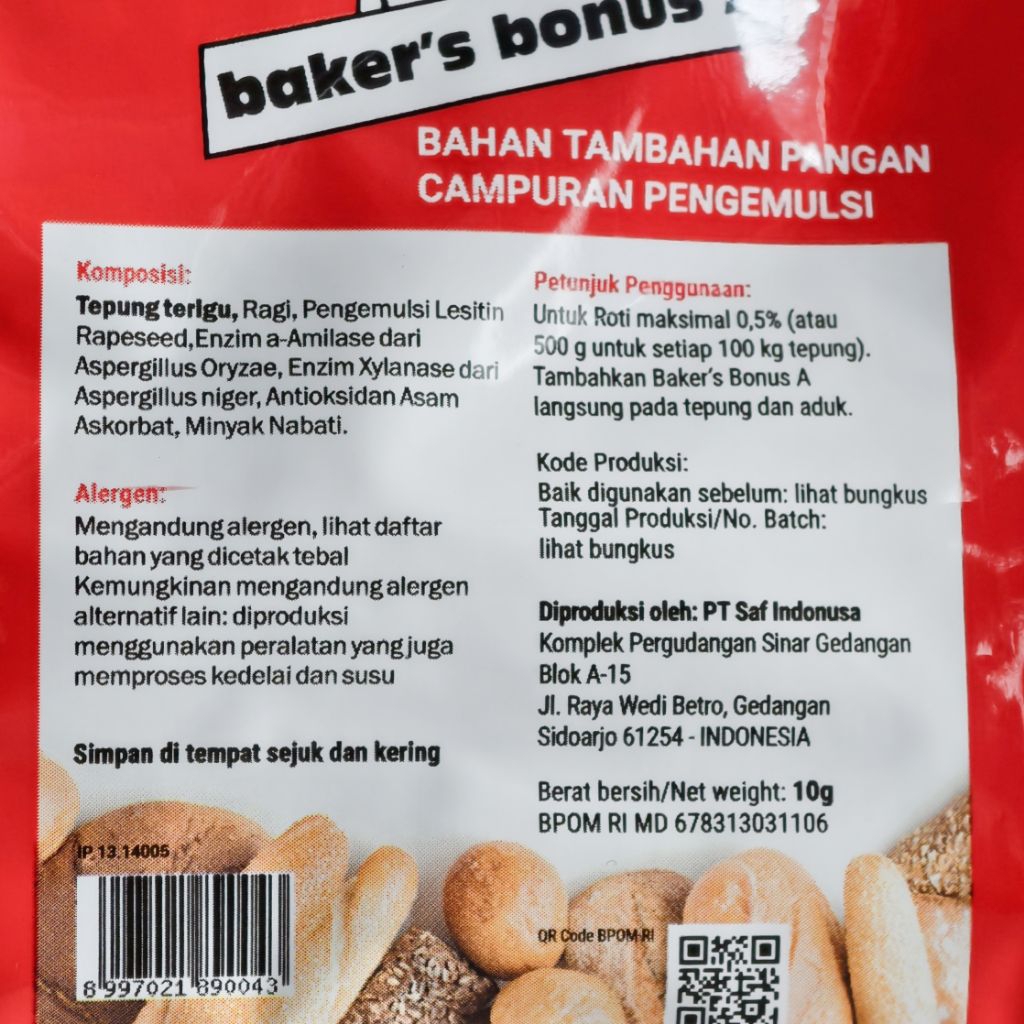 Bakerbonus A Sachet 10Gr Bread Improver Baker's bonus A 10Gr (Per Sachet)