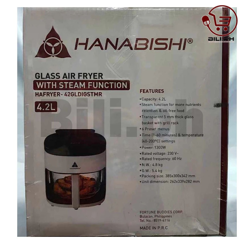 Hanabishi HAFRYER-42GLDIGSTMR Glass Air Fryer with Steam function