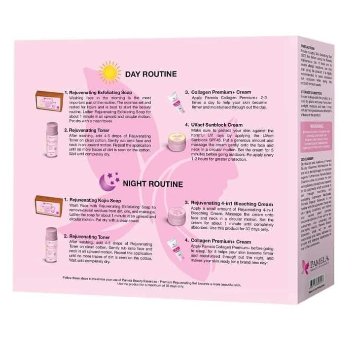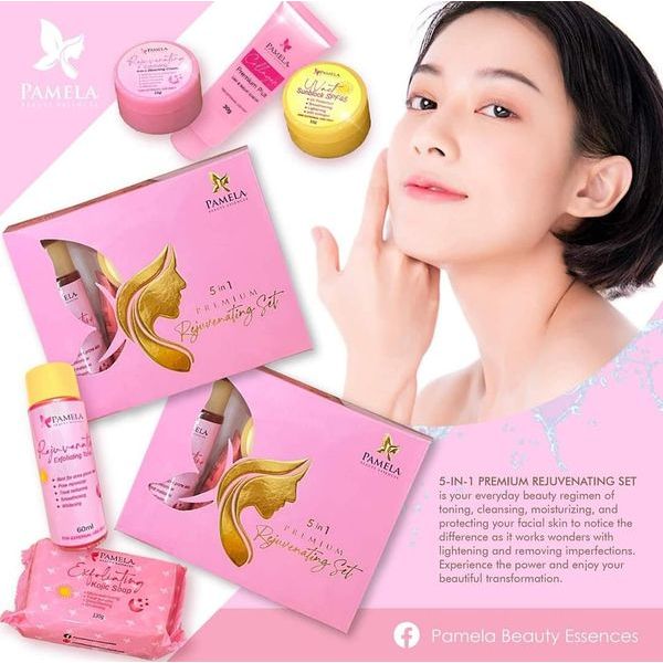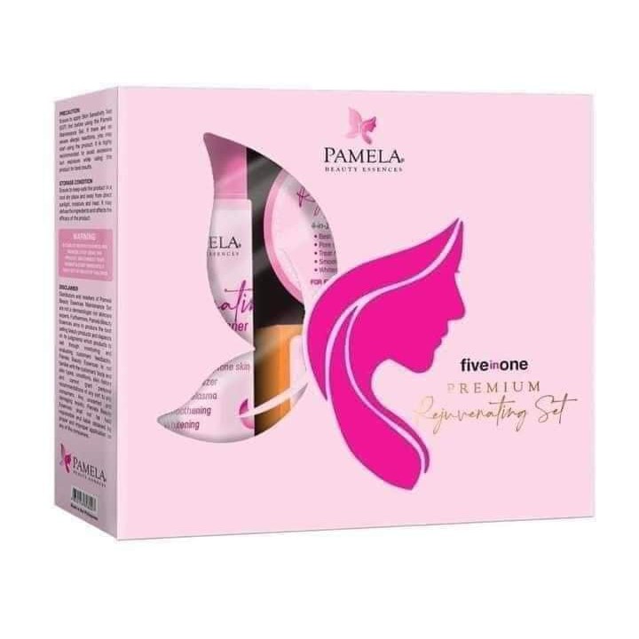 Pamela 5in1 Premium Rejuvenating Set Sunblock, Bleaching Cream, Rejuvenating Toner ,Kojic Soap