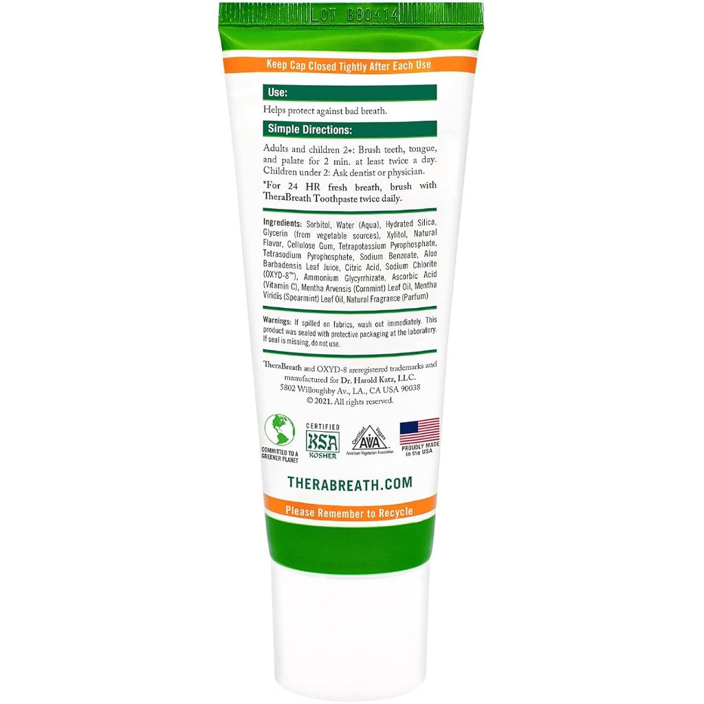 TheraBreath Fresh Breath Dentist Formulated Fluoride Free Toothpaste, Mild Mint - 113.5g