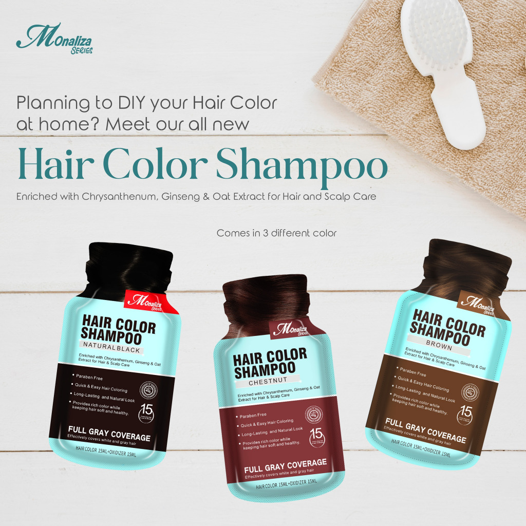 Monaliza Series Hair Color Shampoo 30ml with Chrysanthemum Ginseng Blackening Brown Chestnut