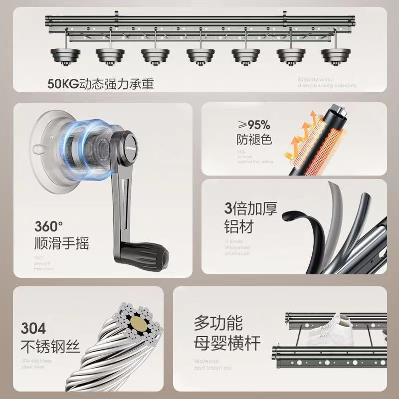 Balcony Lifting Clothes Hanger / drying rack / hanger dryer pole type laundry household balcony ceiling space saving / Elevating Drying Racks Balcony Hand-Cranking Double Pole Clot
