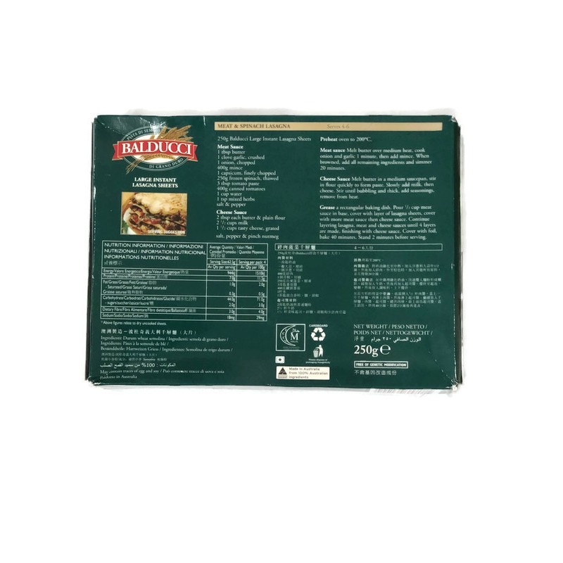 Balducci Large Instant Lasagna Pasta Sheets From Australia (250g)