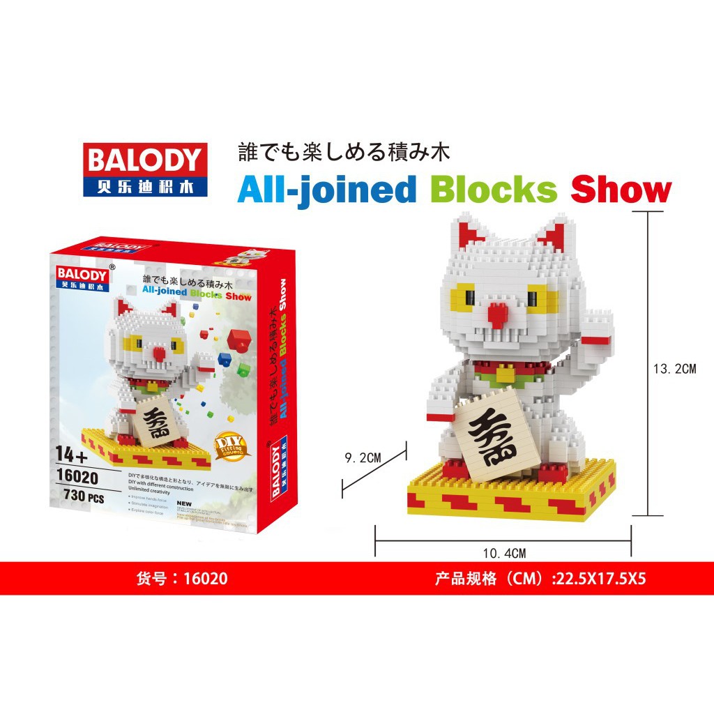 Balody Mini Blocks Cartoon Cat Building Toy the god of wealth Auction Figure Lucky Money Cat Kids 16020