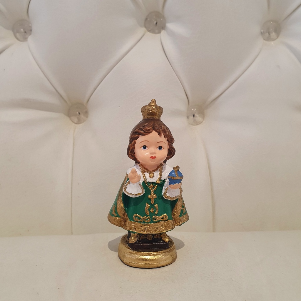 Bambini Chibi Mini Santo Nino Green Statue(9cm) w Retablo (19cm) Altar Set (Sto Nino Jesus)