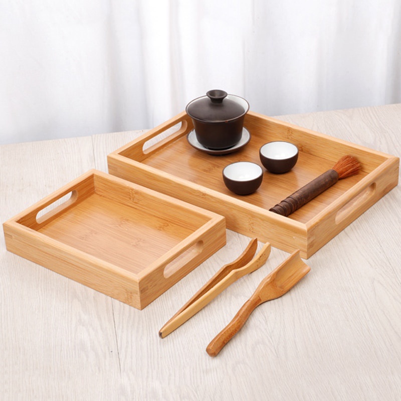 Bamboo Kung Fu tea tray teacup rectangular handle tray Hotel bamboo dinner tray fruit bread tray
