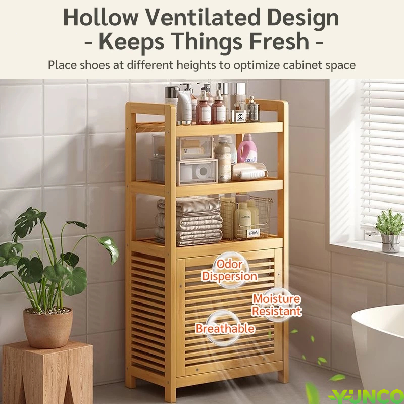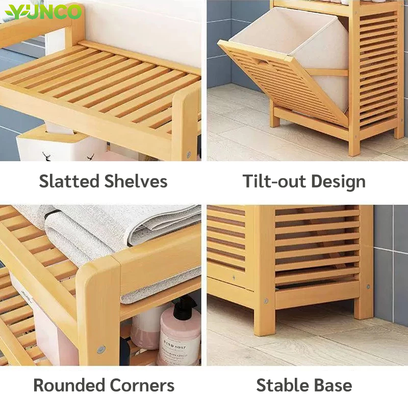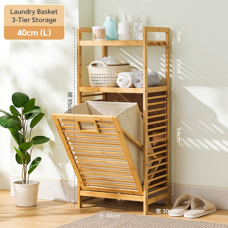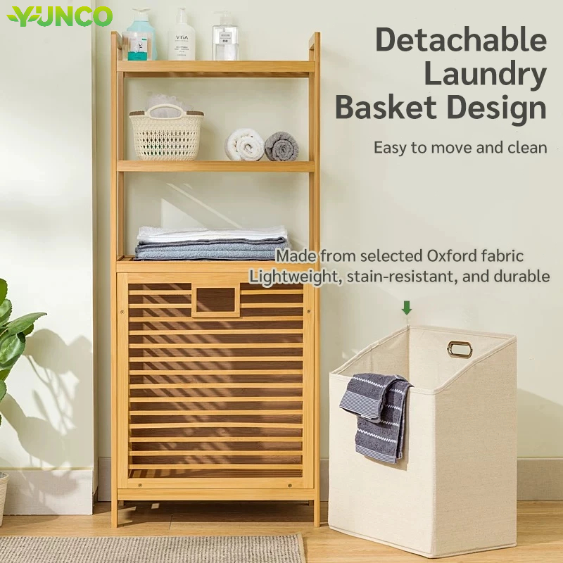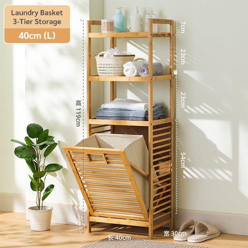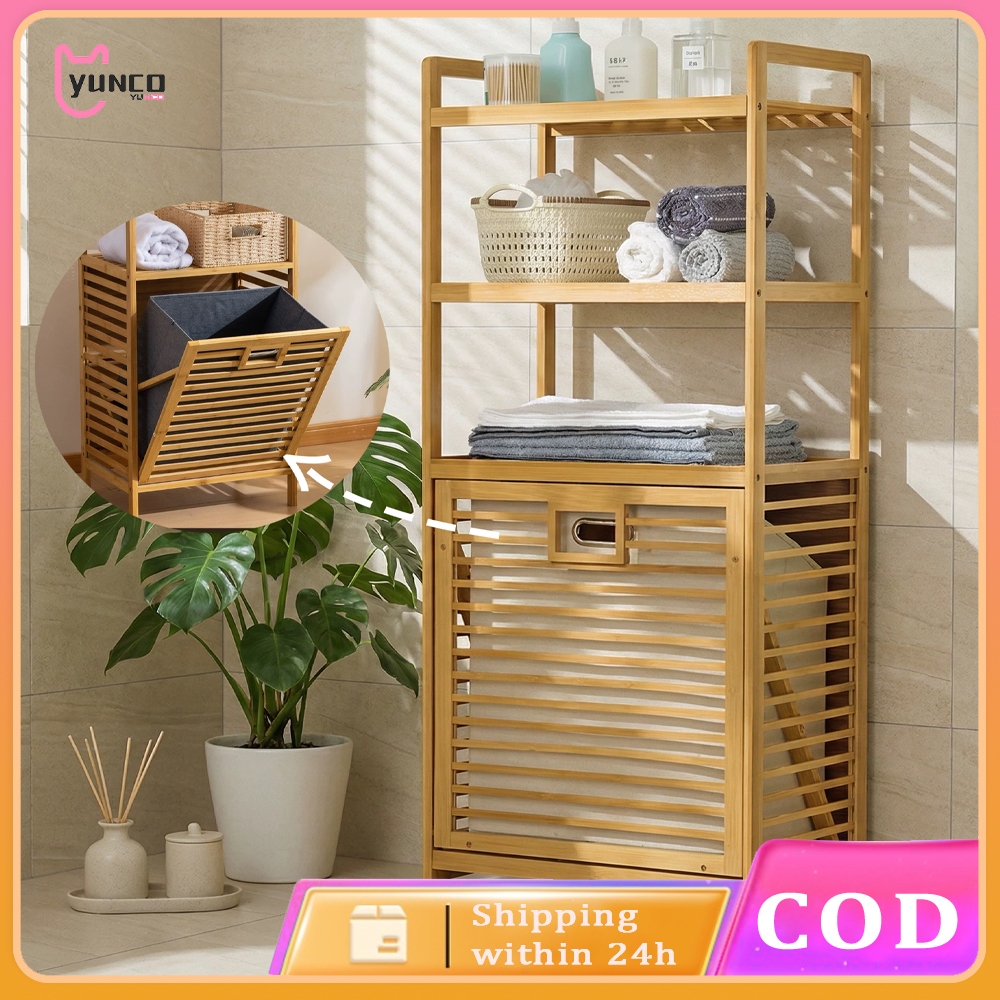 Bamboo Laundry Hampe Bathroom Storage Rack Storage Cabinet With Dirty Clothes Sorage Basket