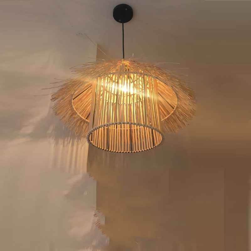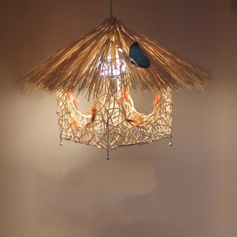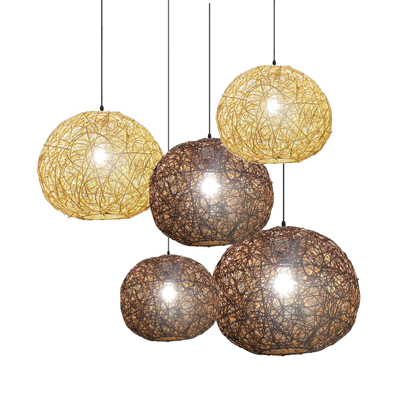 Bamboo Rattan Chandelier Ceiling Light Woven Hemp Ball pendant light Hemp Rattan Lamps Art Restaurant Cafe Dining Native Hanging Lamp Drop Lights