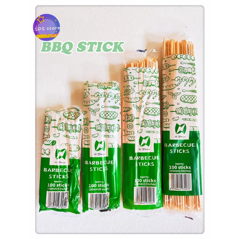 Bamboo Skewers 6inchs 8inchs 10inchs 12inchs (Round) BBQ Stick 100pcs/pack SPS