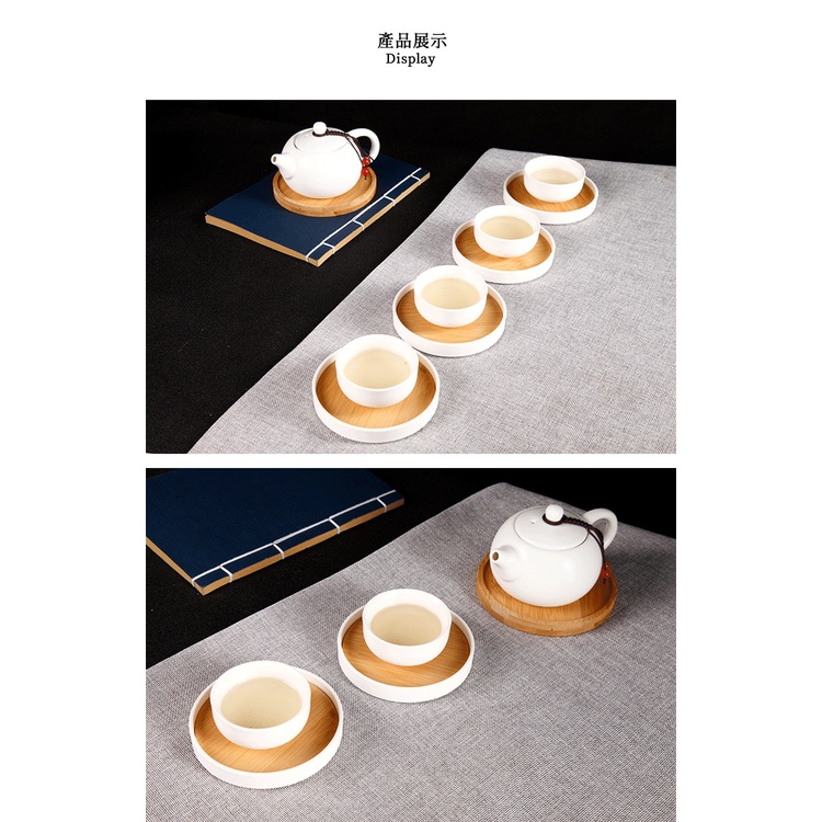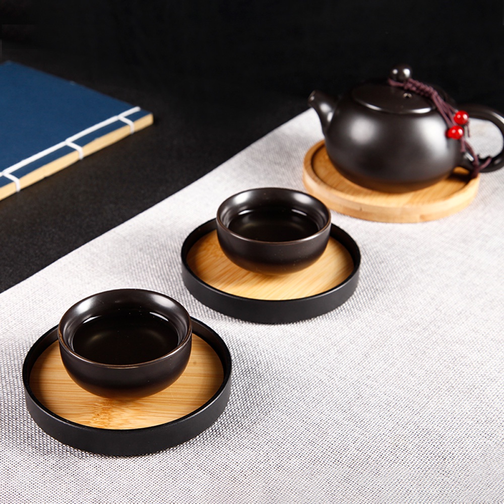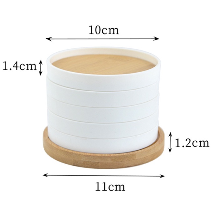 Bamboo coaster 5-piece wooden coaster with bracket - for cold and hot drinks