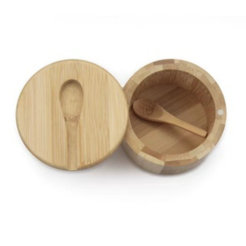 Bamboo spice storage box with wooden teaspoon with lid. Natural and environmentally friendly,