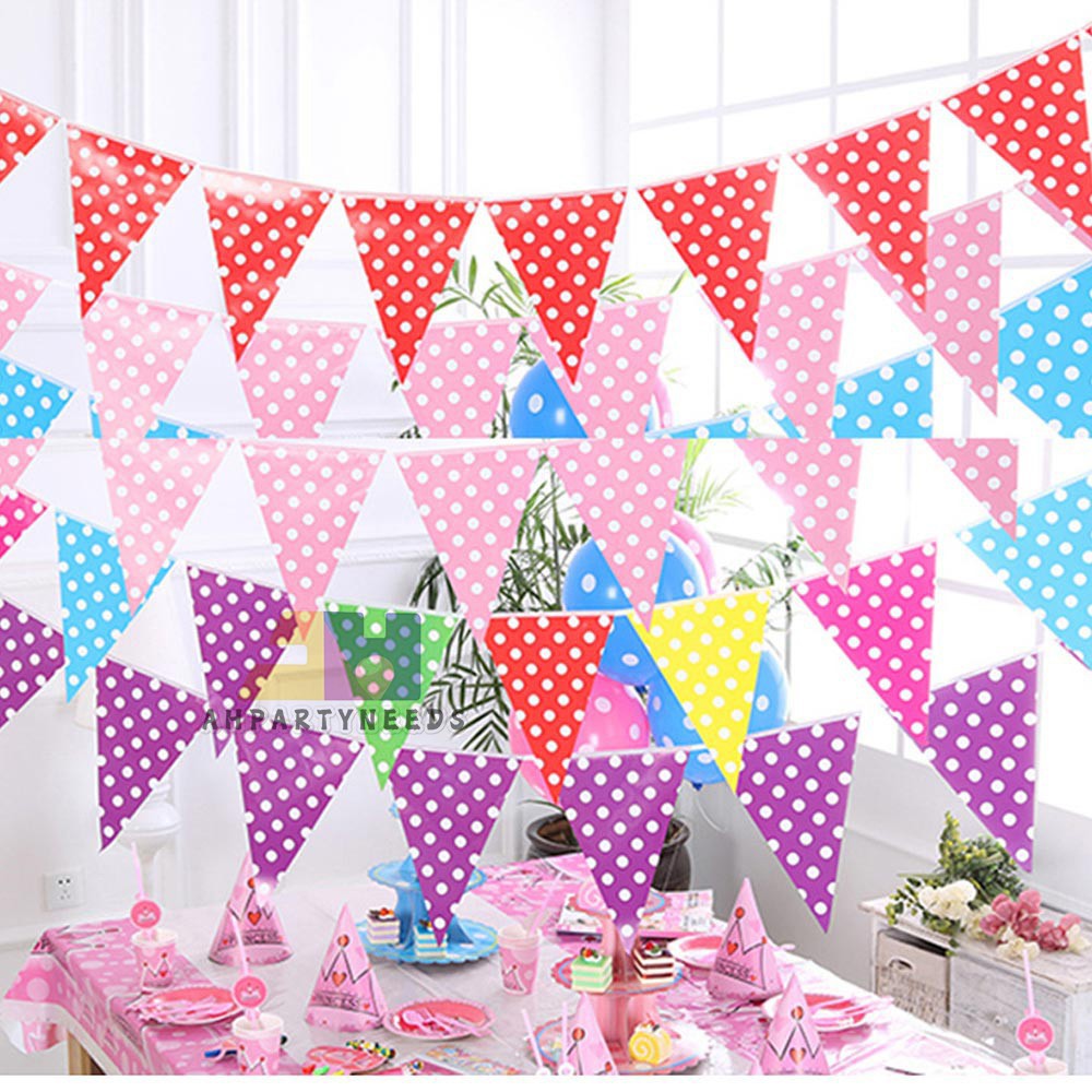 Banderitas Triangle Banner Polka DotS Stripe Checkered Birthday Wedding Party Festival Decoration