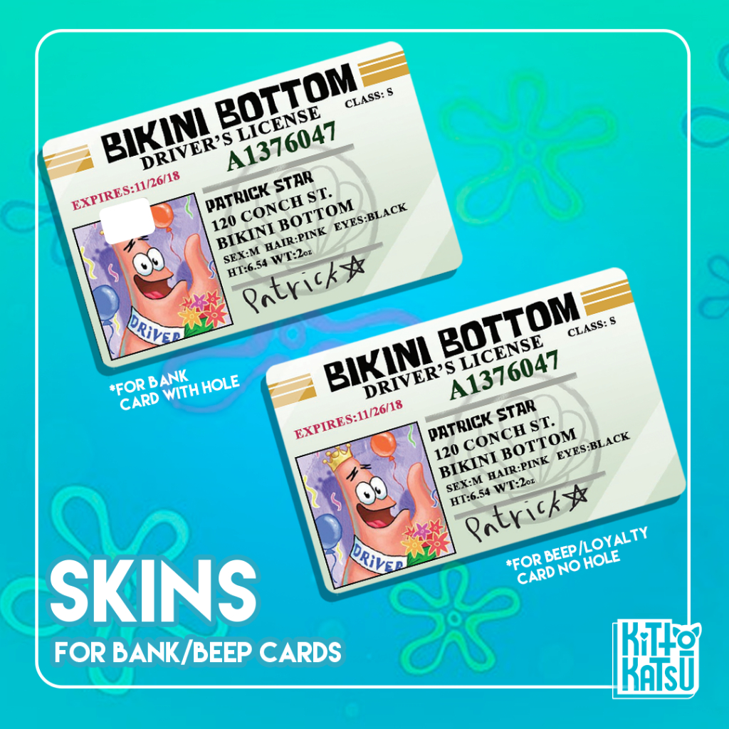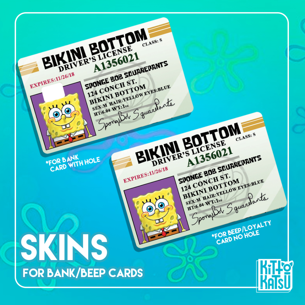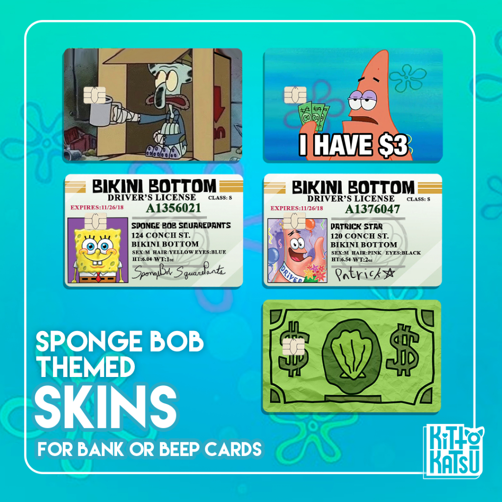 Bank card skins/stickers (Spongebob theme) Sold per 1 piece
