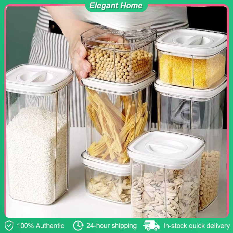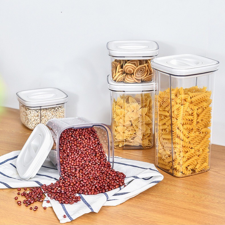 Airtight Container Easy Open Lock Lid Dry Food Storage Leak Proof Canister (PET Plastic)