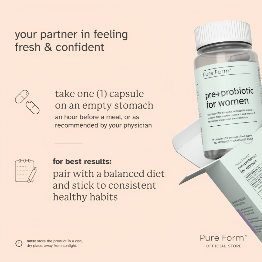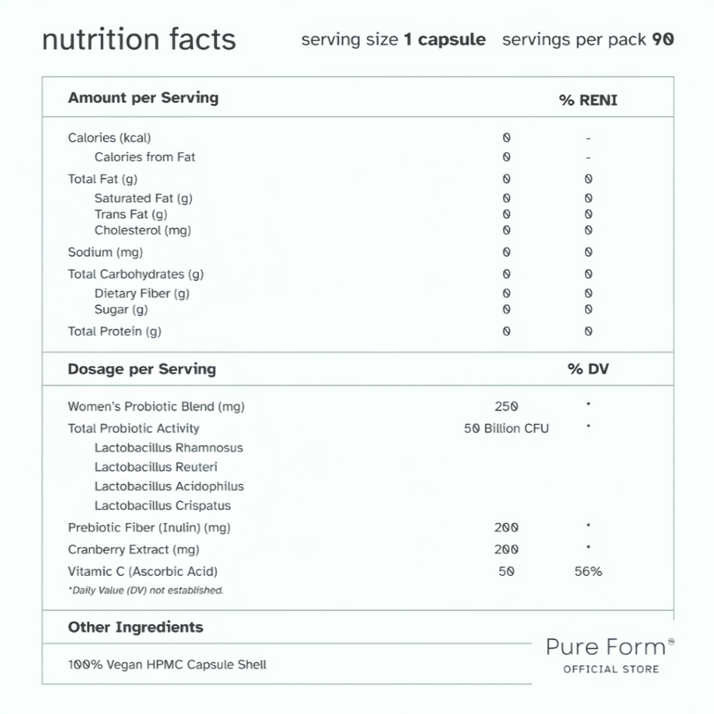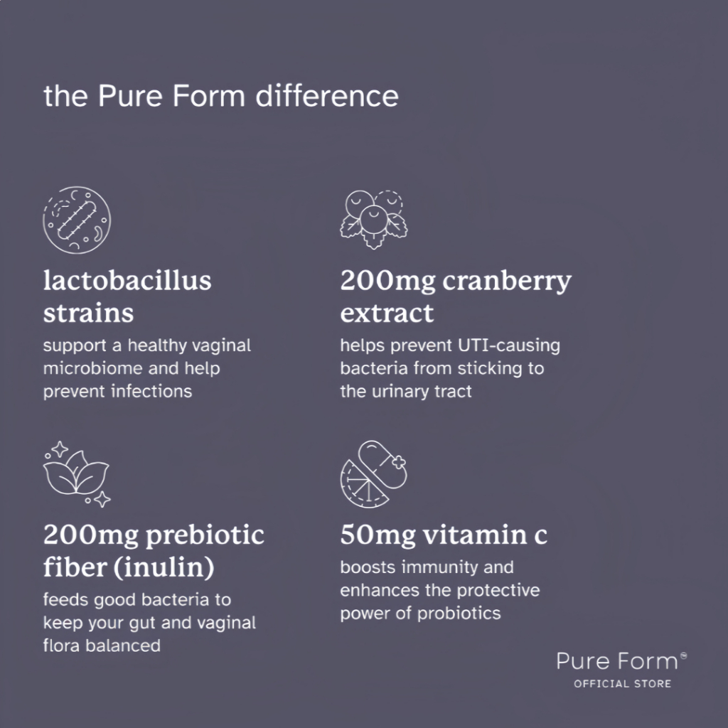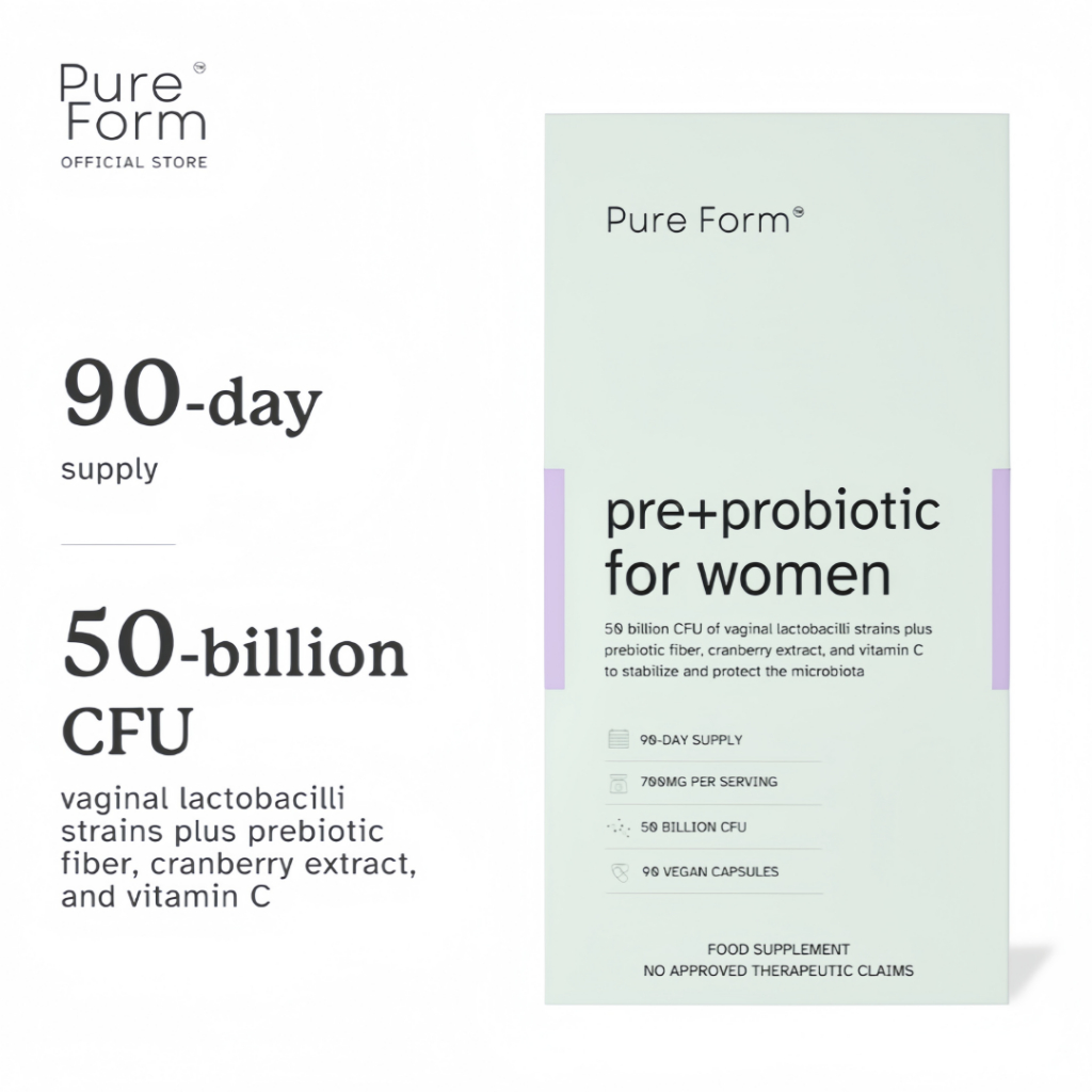 Pure Form Pre + Probiotic for Women | 50 Billion CFU Vaginal Probiotic Strains + Prebiotic Fiber