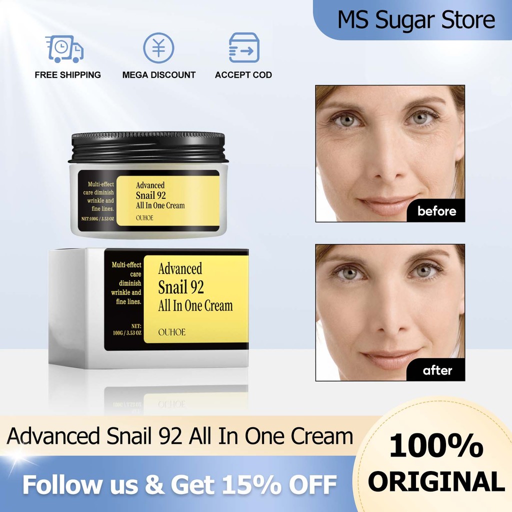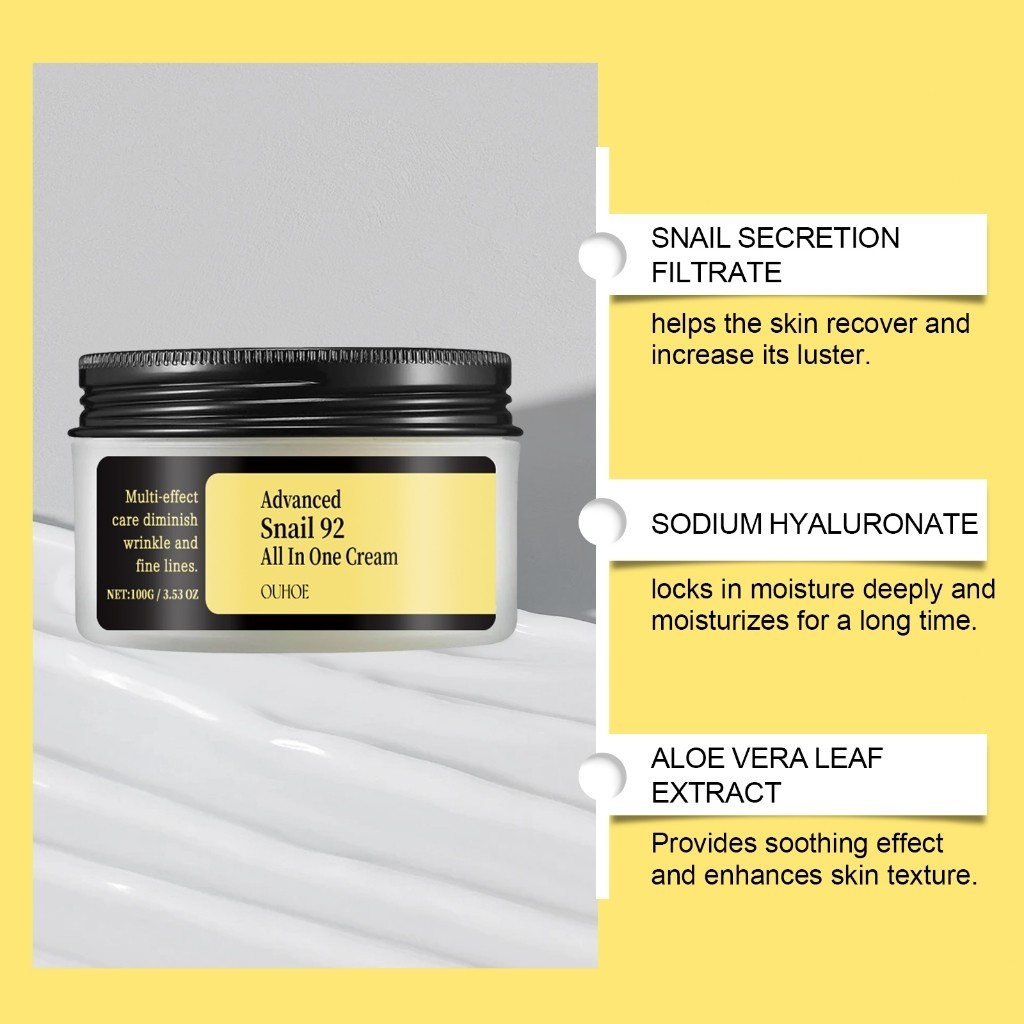 OUHOE Advanced Snail 92 All in one Cream 100g Snail Secretion Filtrate 92% Moisturizing Anti-aging