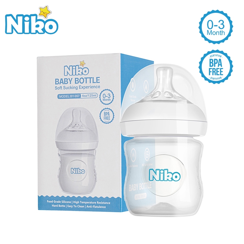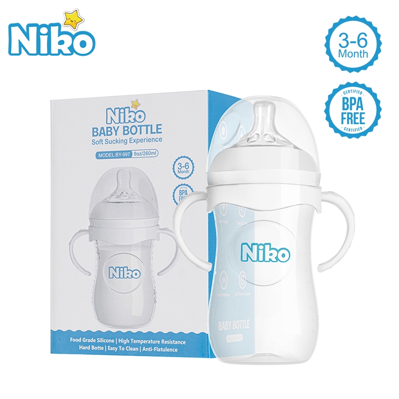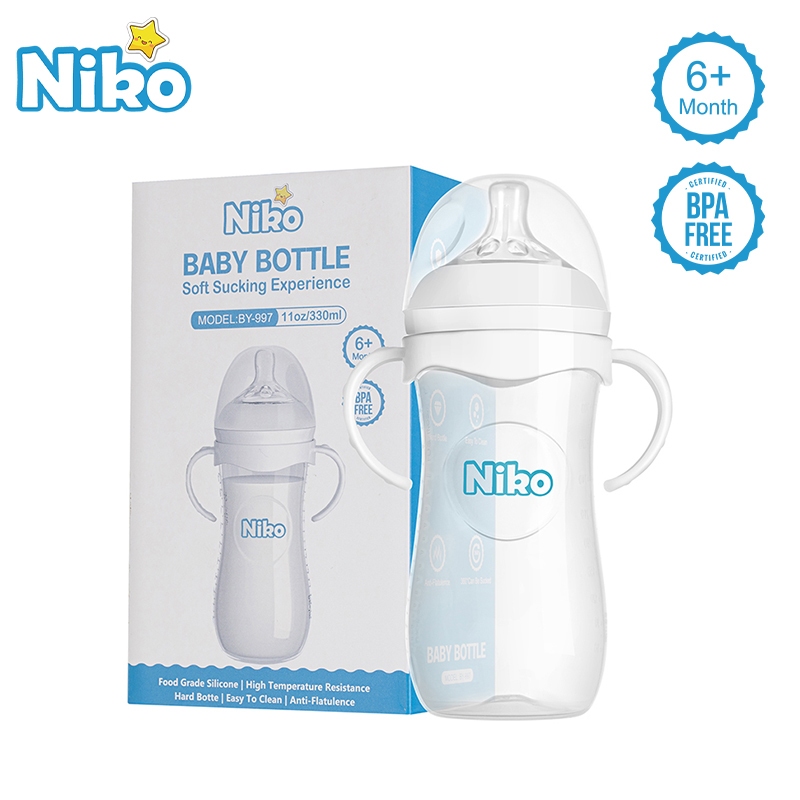 NIKO Baby Feeding Bottle Natural Milk Bottle For Newborn Infant With Handle Anti Colic Silicone Nipple BPA Free 4oz 8oz 11oz