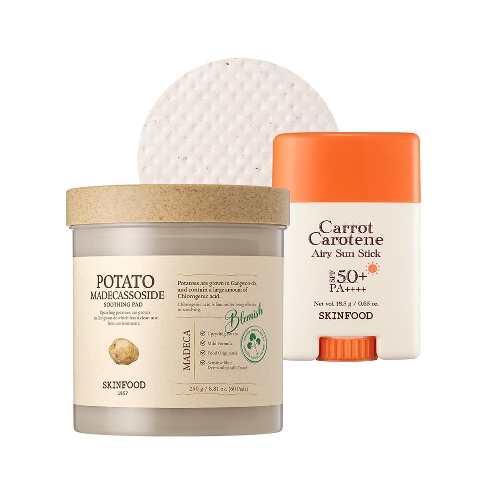 [SKINFOOD Official][Set] Carrot Carotene Airy Sun Stick 18.5g + Potato Madecassoside Soothing Pad 60ea