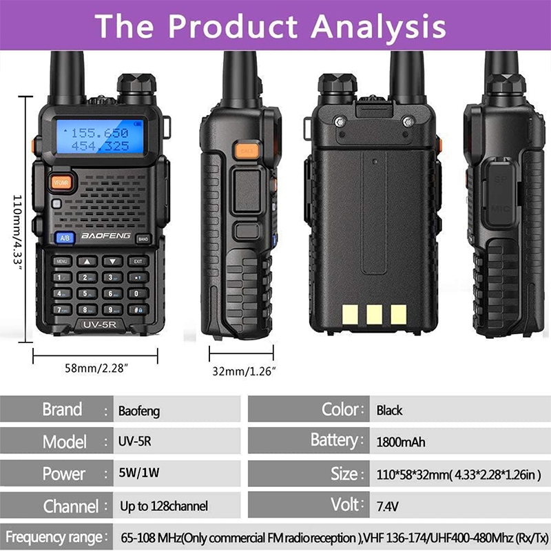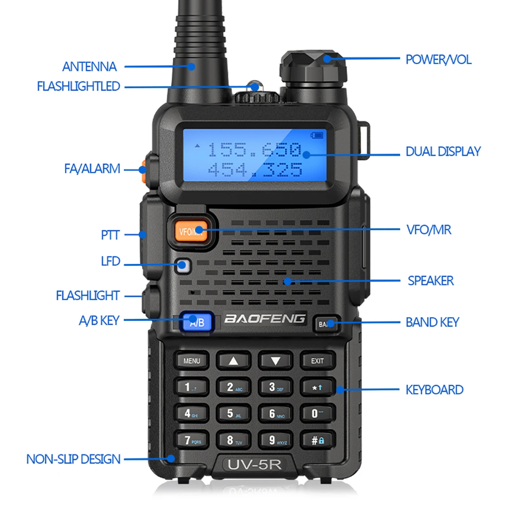 Baofeng UV-5R Walkie Talkie VHF/UHF Dual Band Two-Way Radio 10km Long Range Ham Radio FM Transceiver